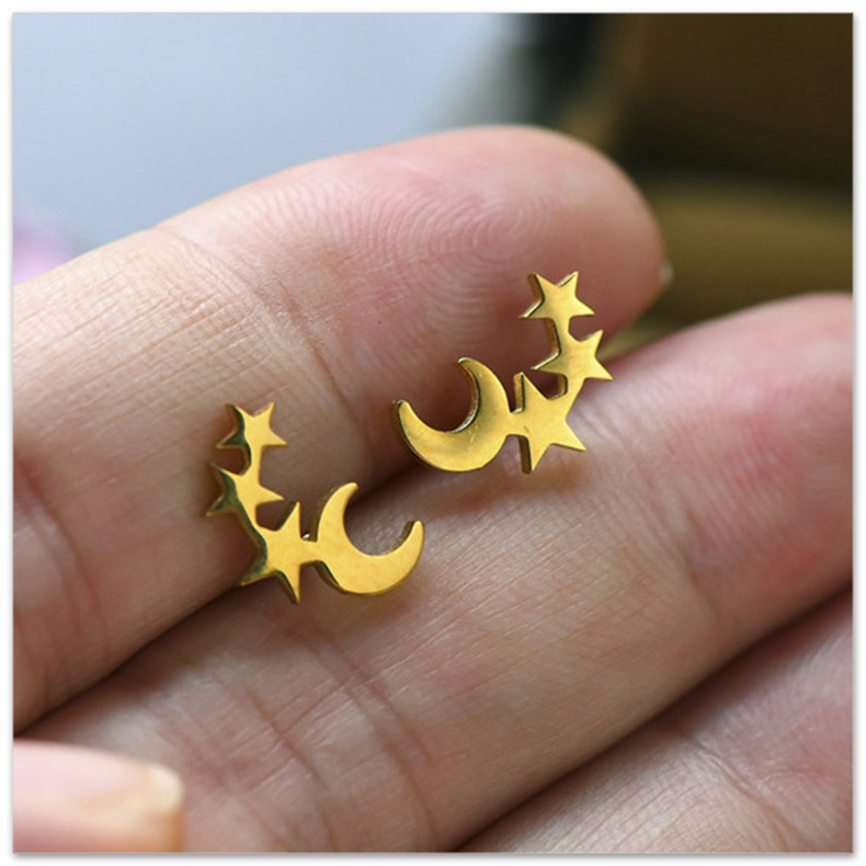 厂家供应创意不锈钢月亮星星耳钉  时尚简约饰品星星月亮耳钉女式
