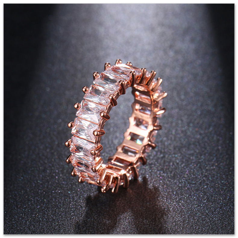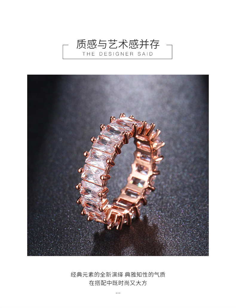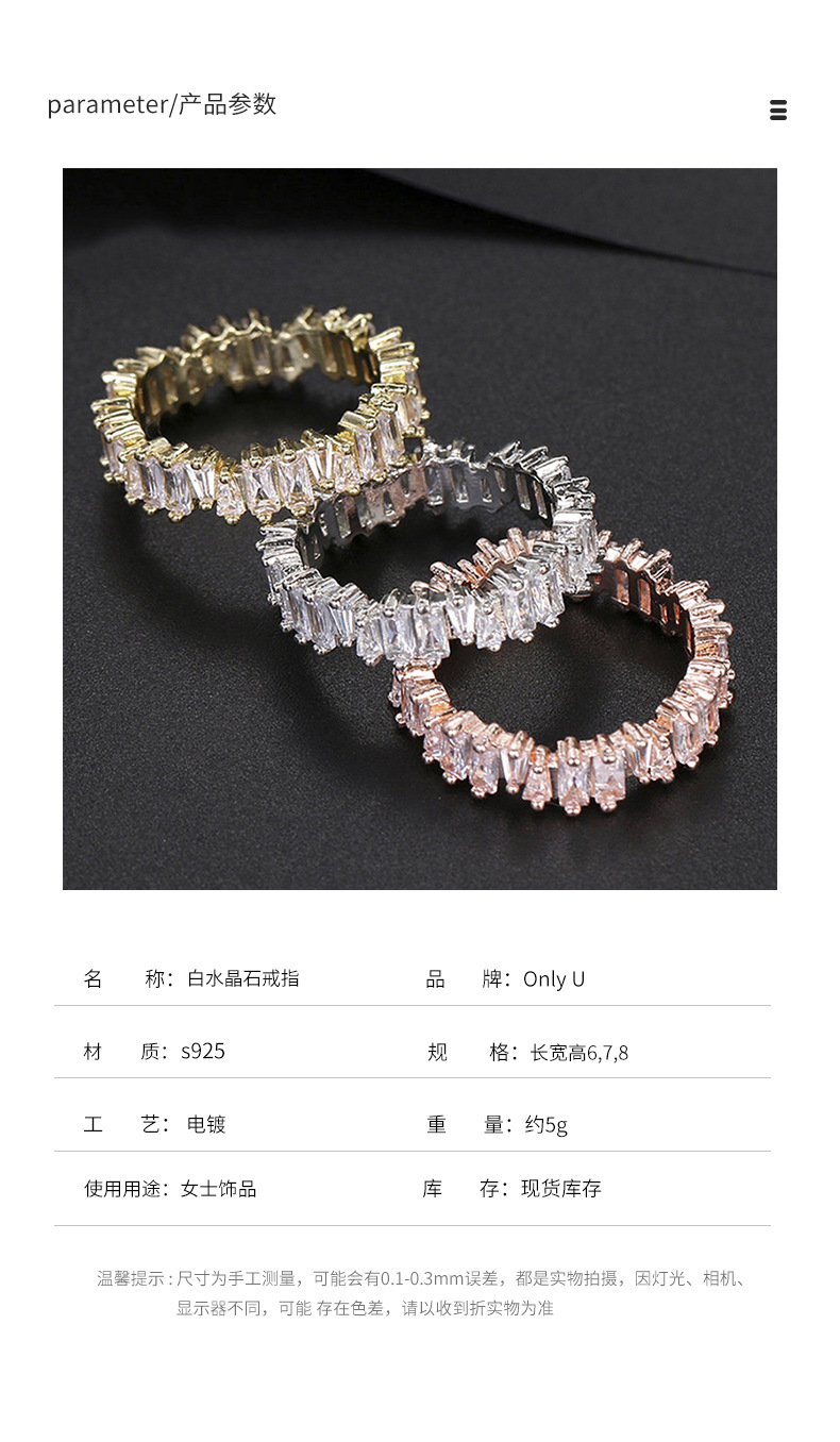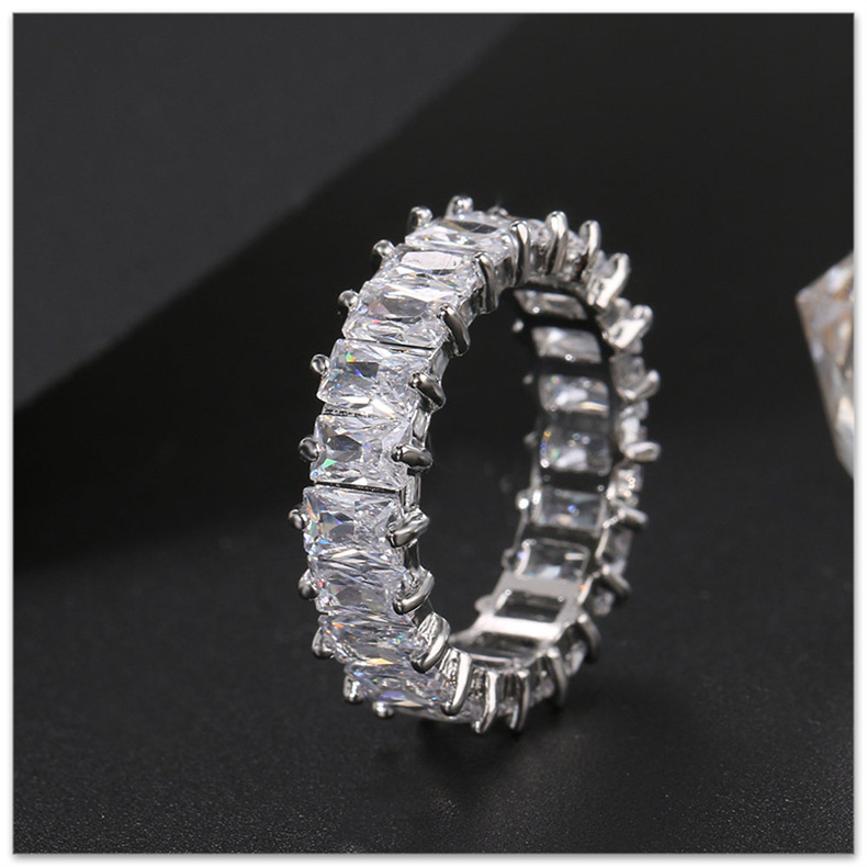 新款时尚个性长方形锆石满钻女戒指小众轻奢女白水晶石戒指不规则 English | 投诉