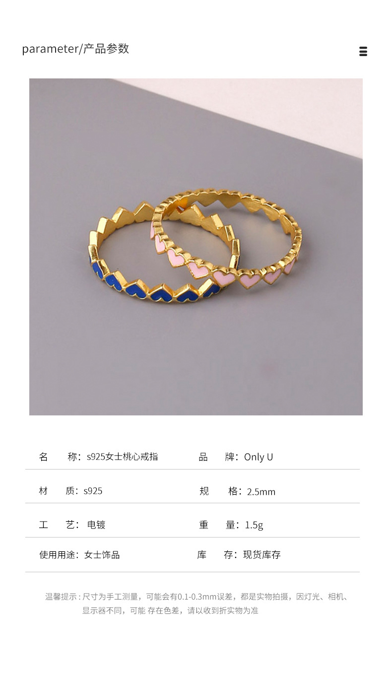 新款甜美爱心彩色滴油戒指简约设计s925女士桃心戒指爱心戒指指环 English | 投诉