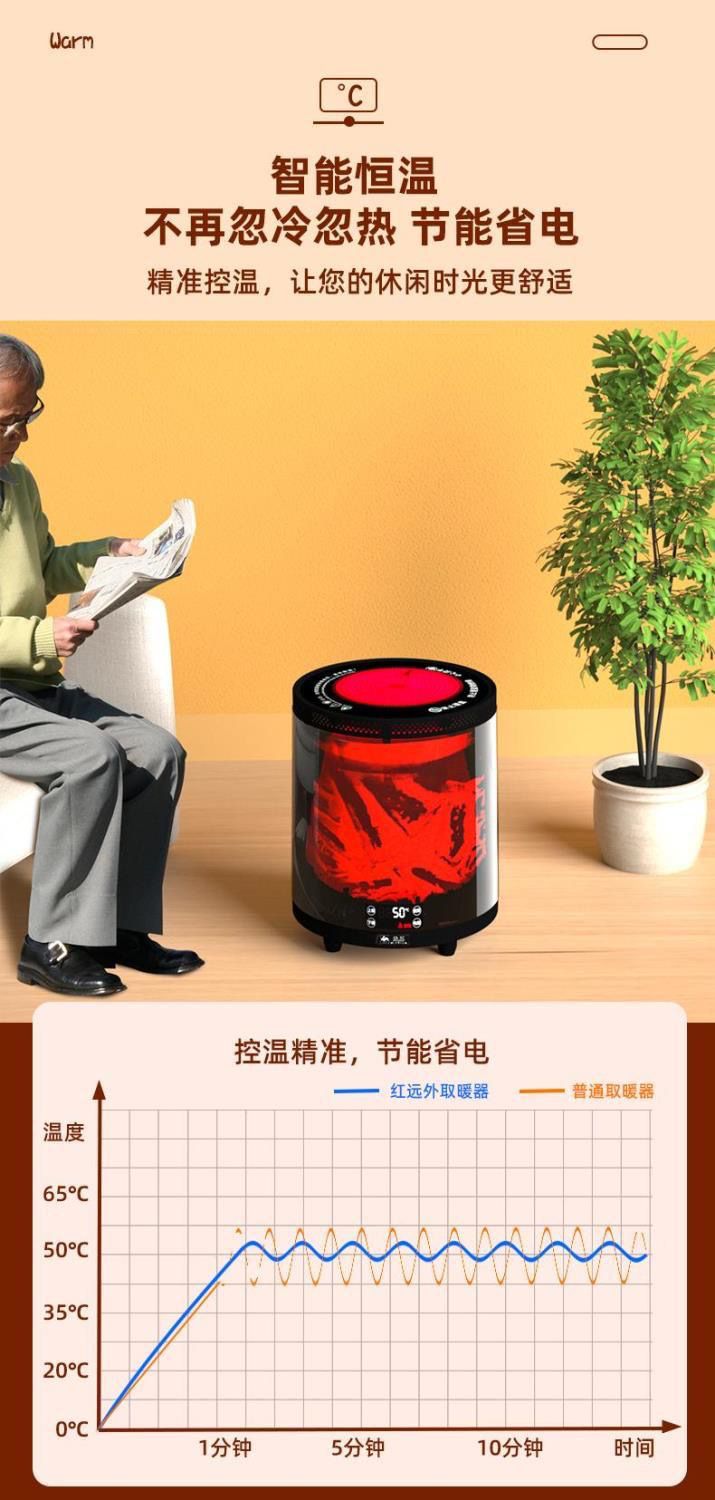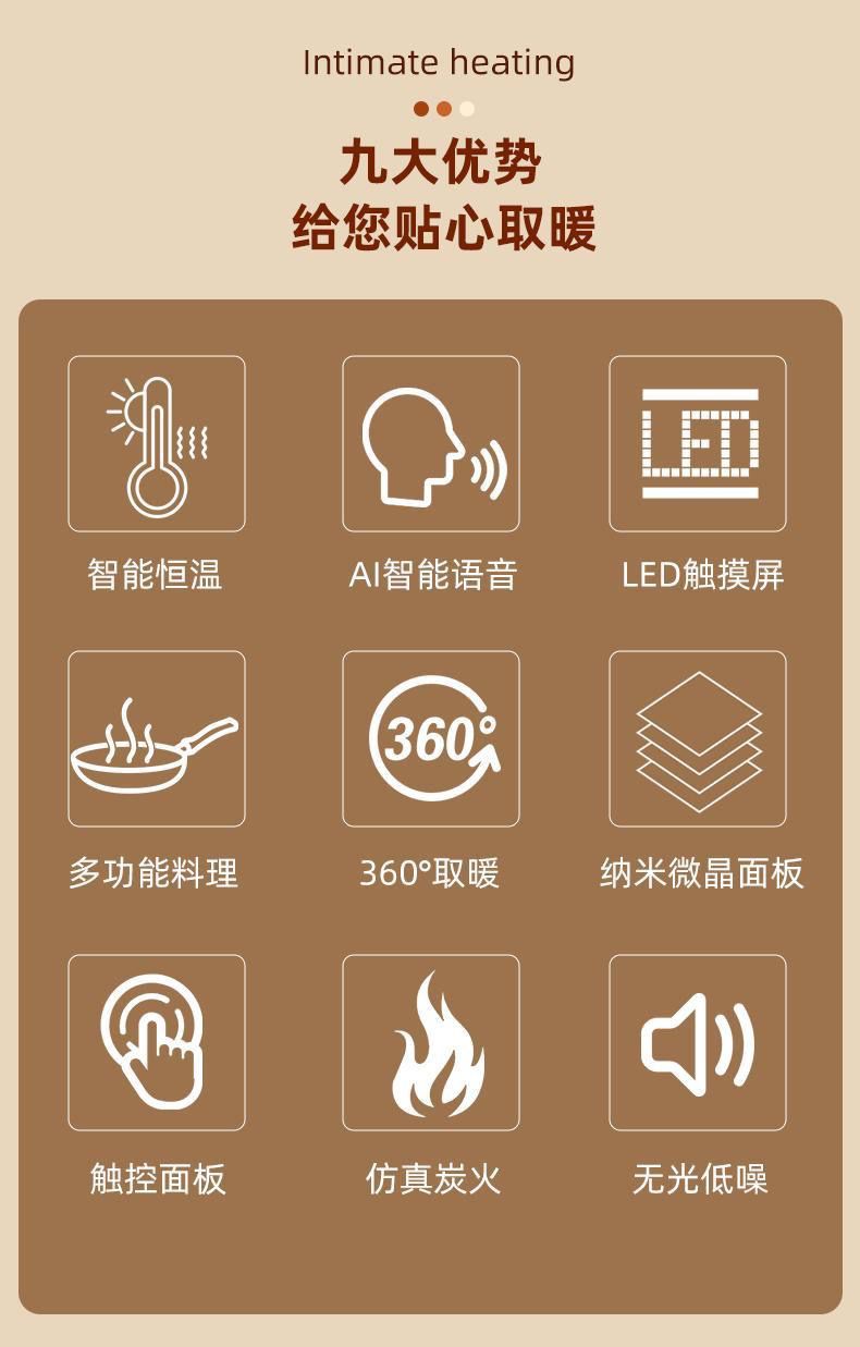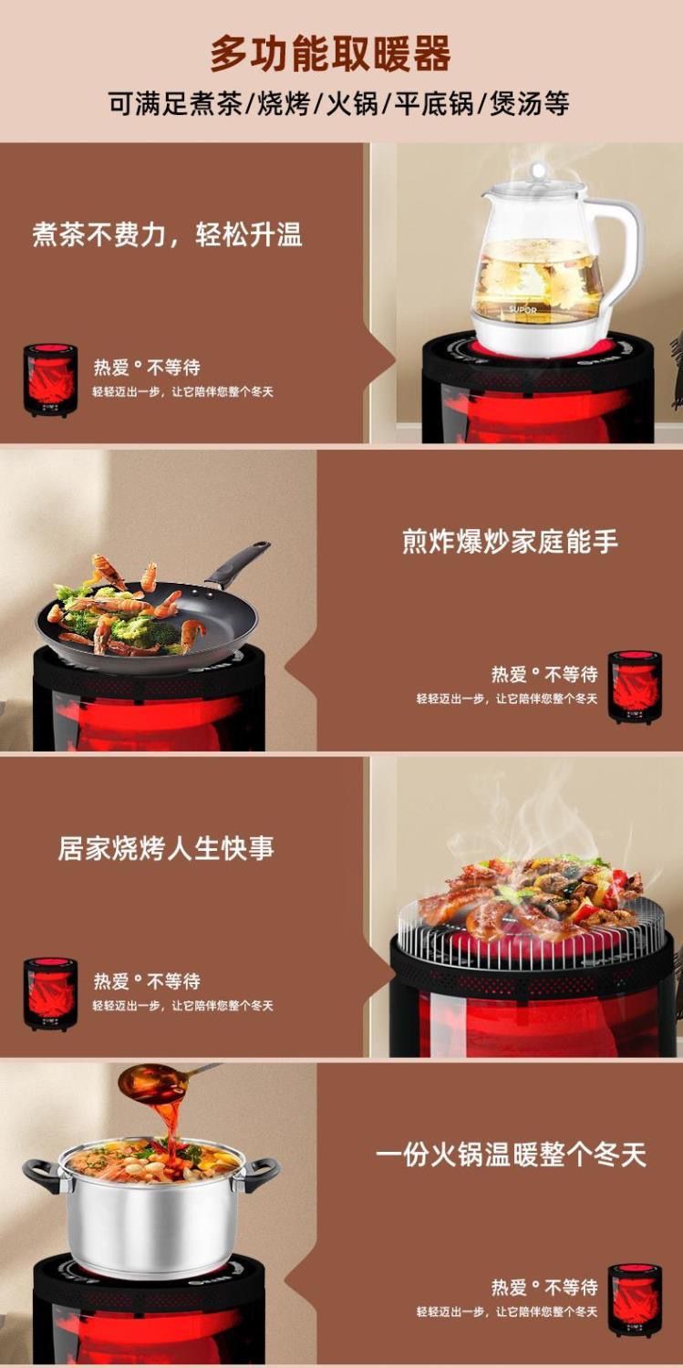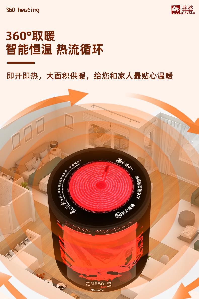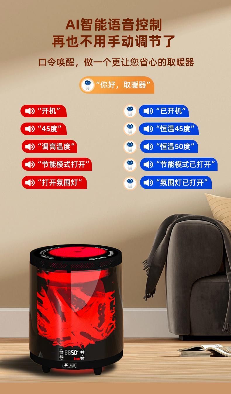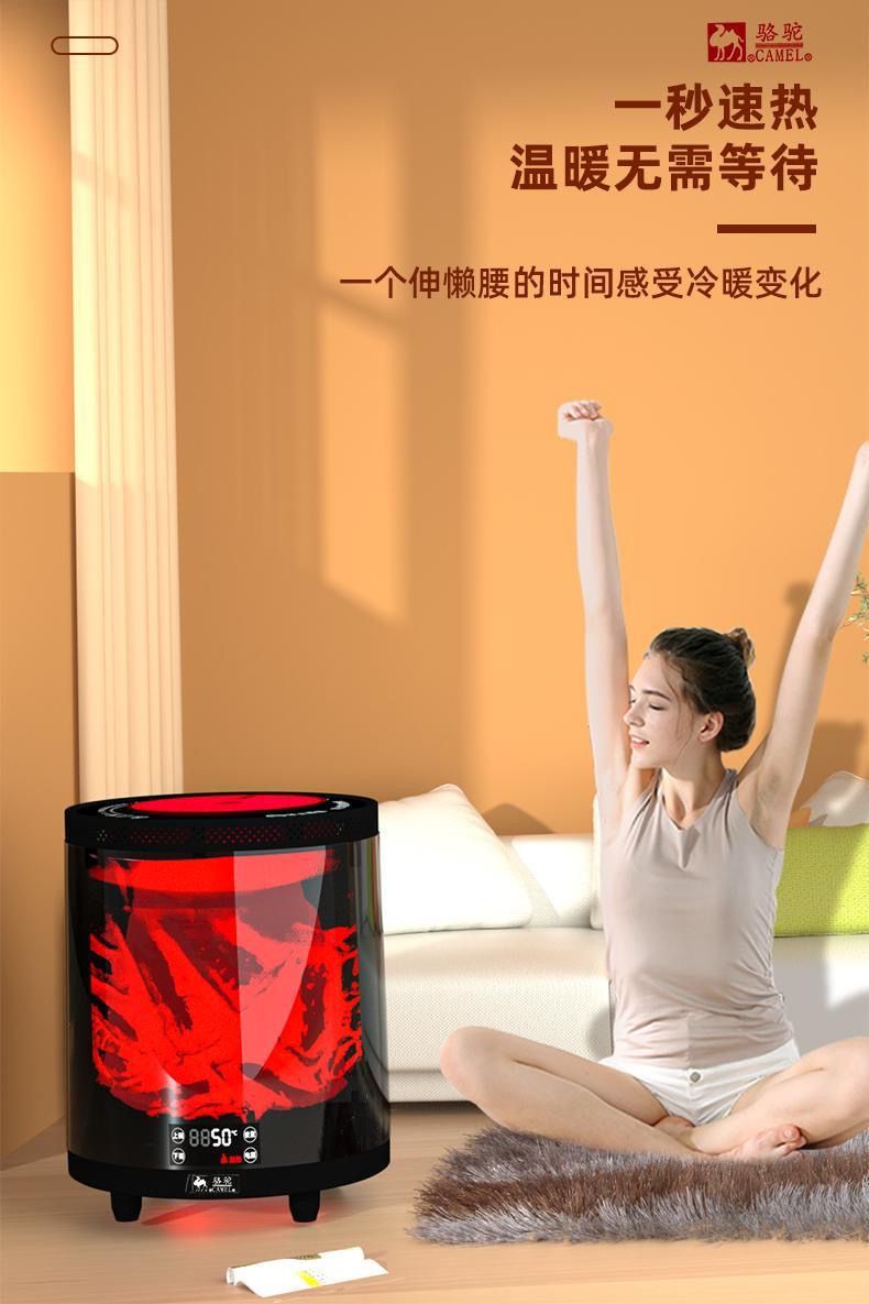 骆驼牌取暖器室内家庭围炉煮茶智能语音小太阳暖风机3d火焰取暖器