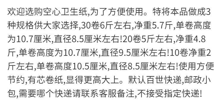 卫生纸6斤30卷2斤10卷4层空心卷纸宾馆有芯纸巾家用卷纸厕纸 投诉