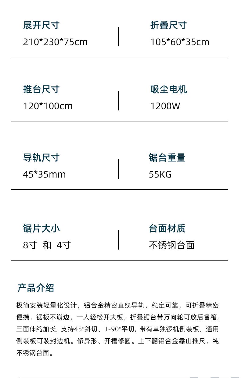 | 加厚双隐形精密导轨锯台+免调节子母锯 | ¥325864 | 99999件可售 |