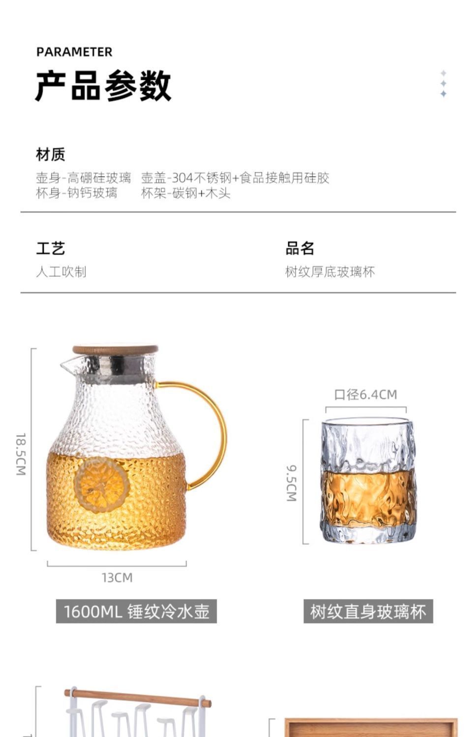 | 四只装+带提手茶盘+杯架+冷水壶(破损包赔) | ¥5836 | 99999件可售 |