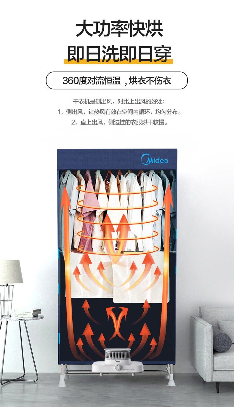 美的烘干机家用干衣机速干衣烘衣机小型烘衣服风干机衣柜2024新款