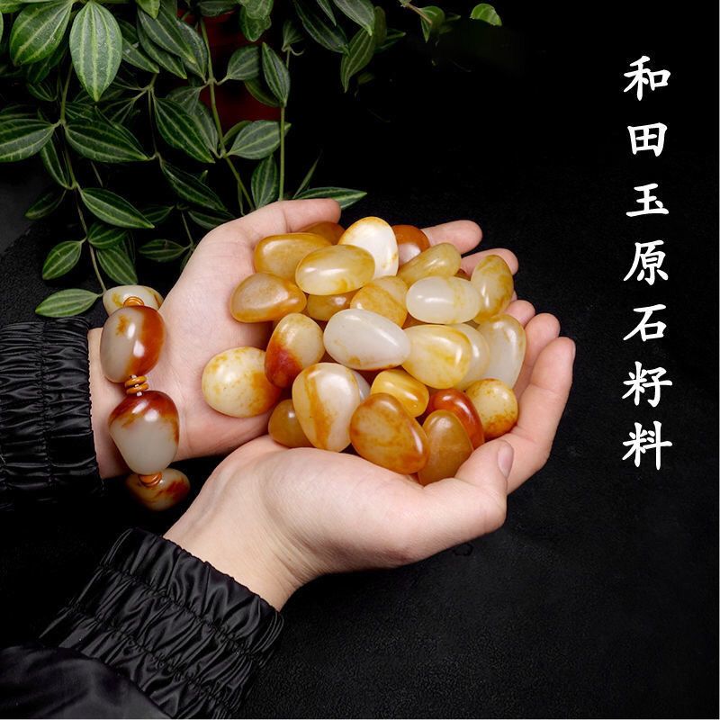 新疆和田玉籽料原石手链枣红皮小籽红泌皮白玉石随形手串男女情侣