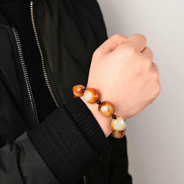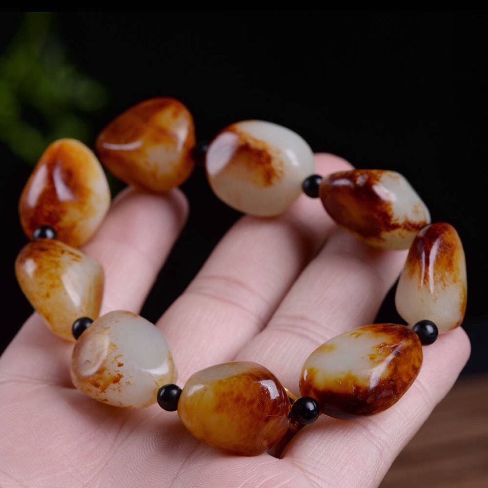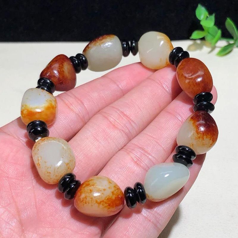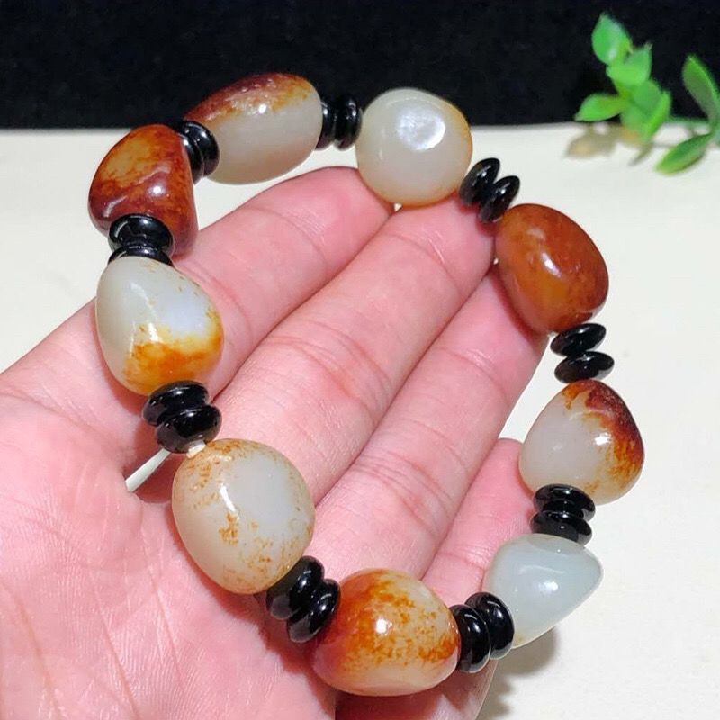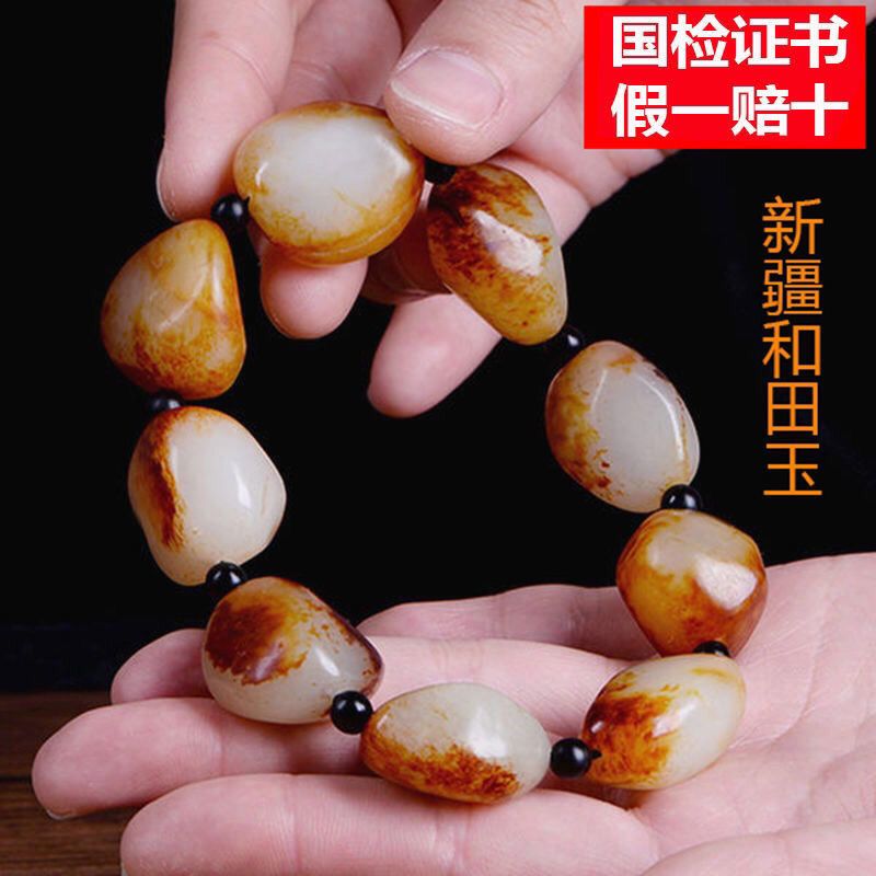 新疆和田玉籽料原石手链枣红皮小籽红泌皮白玉石随形手串男女情侣 投诉