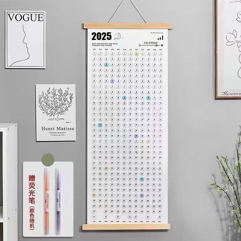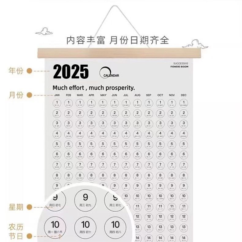 木质家用挂墙年历计划表单张打卡挂历2025ins风海报月历简约日历