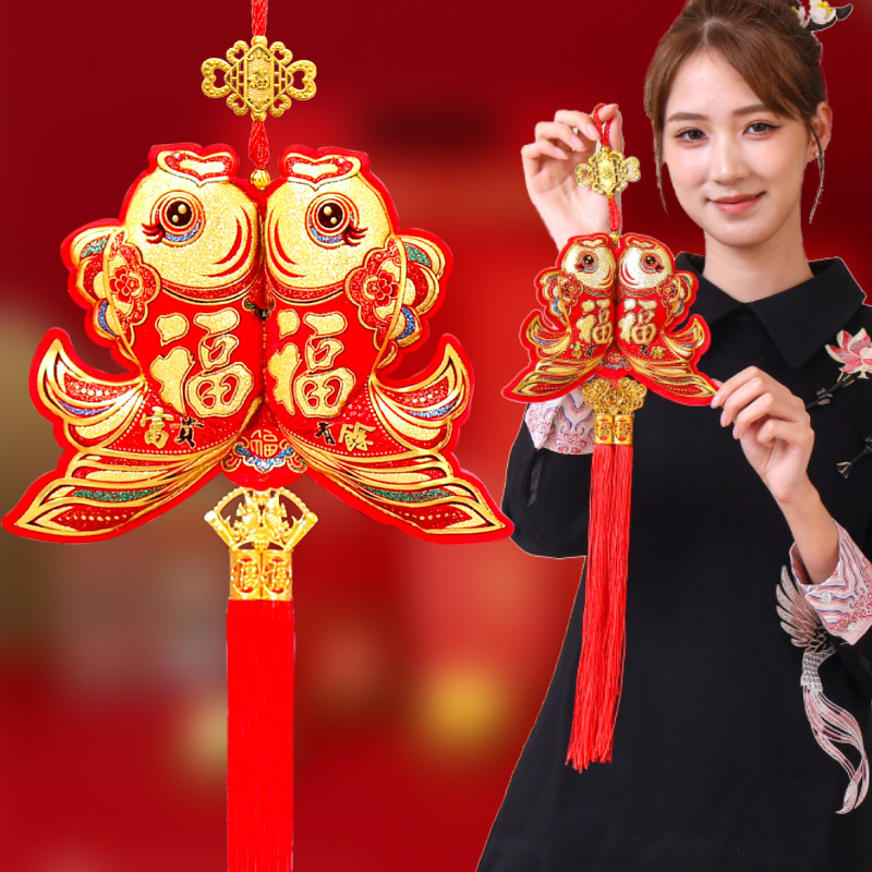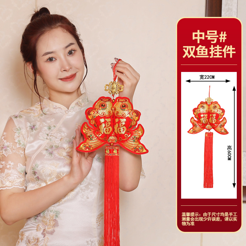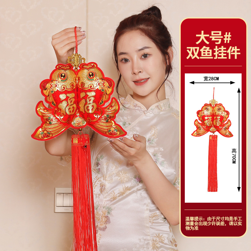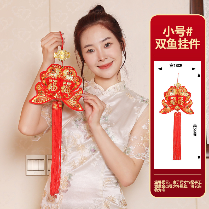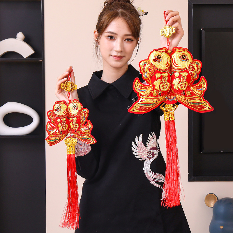 双鱼装饰品挂件布鱼喜庆用品福包钱袋元宝挂件中国结新年装饰
