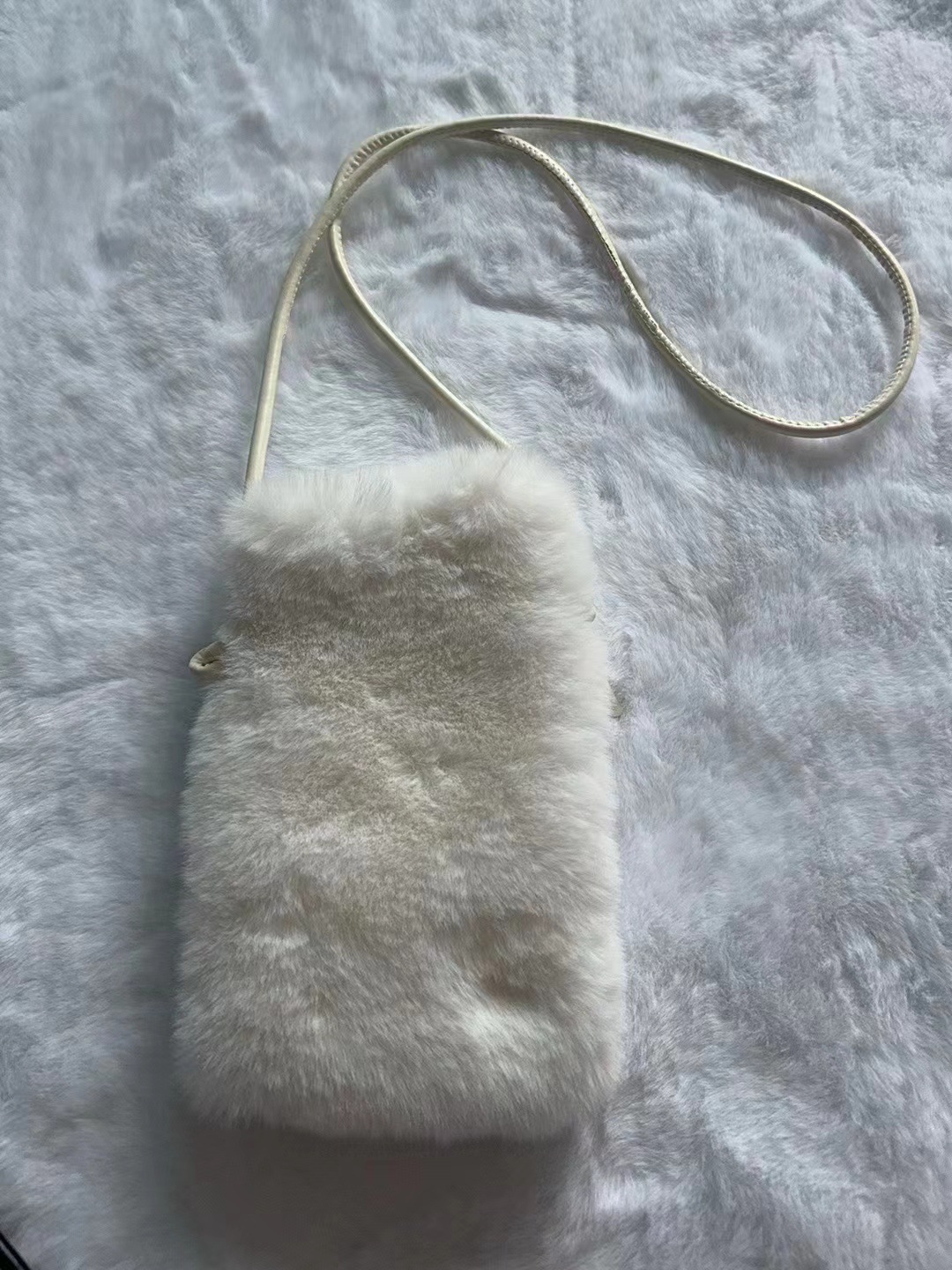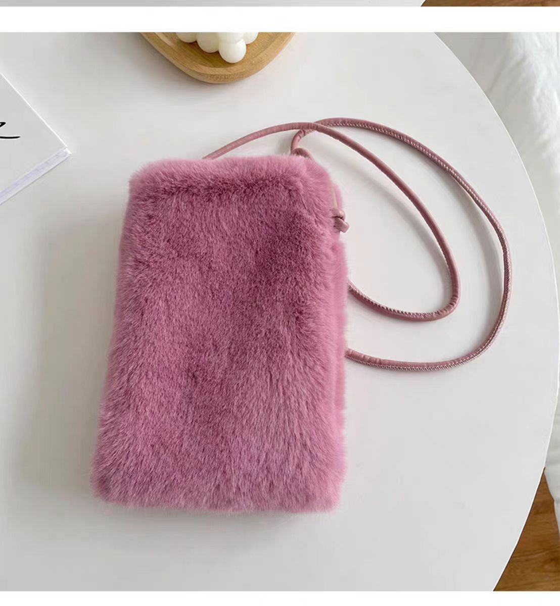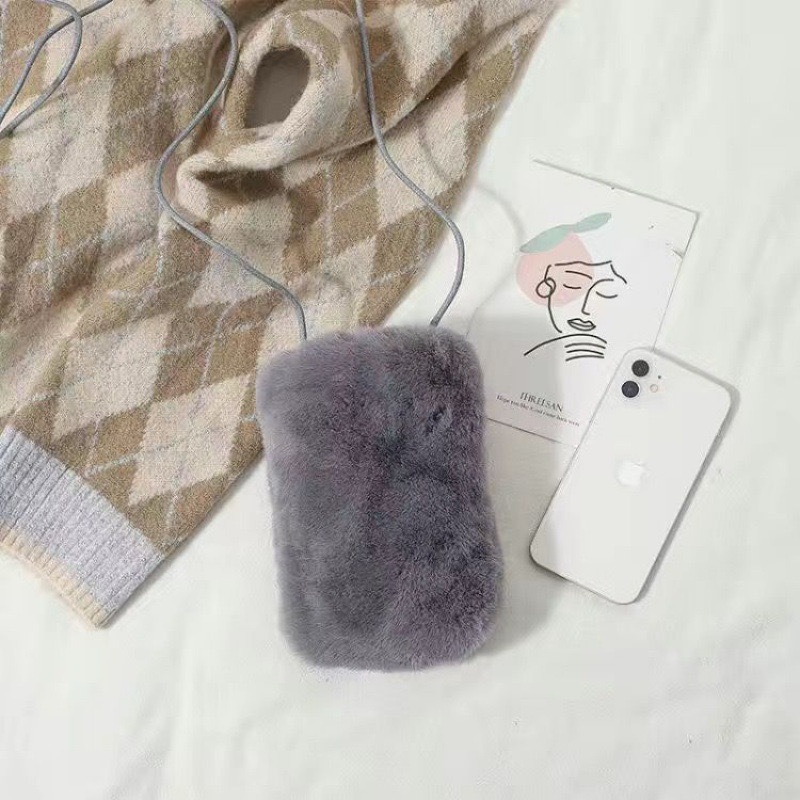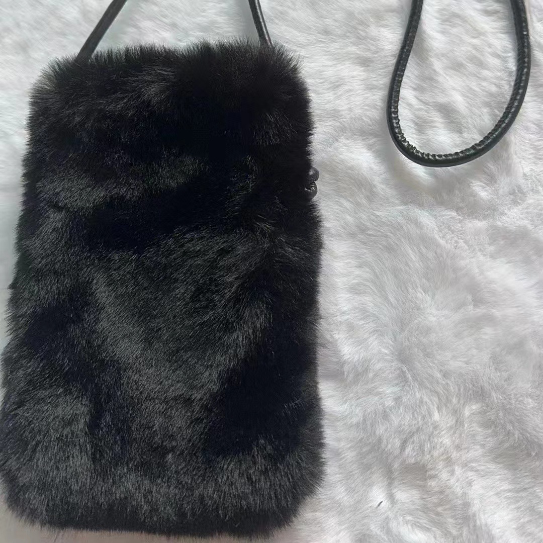 仿獭兔毛毛手机包包女新款小众设计简约斜挎包潮流竖款零钱包卡包 English | 投诉