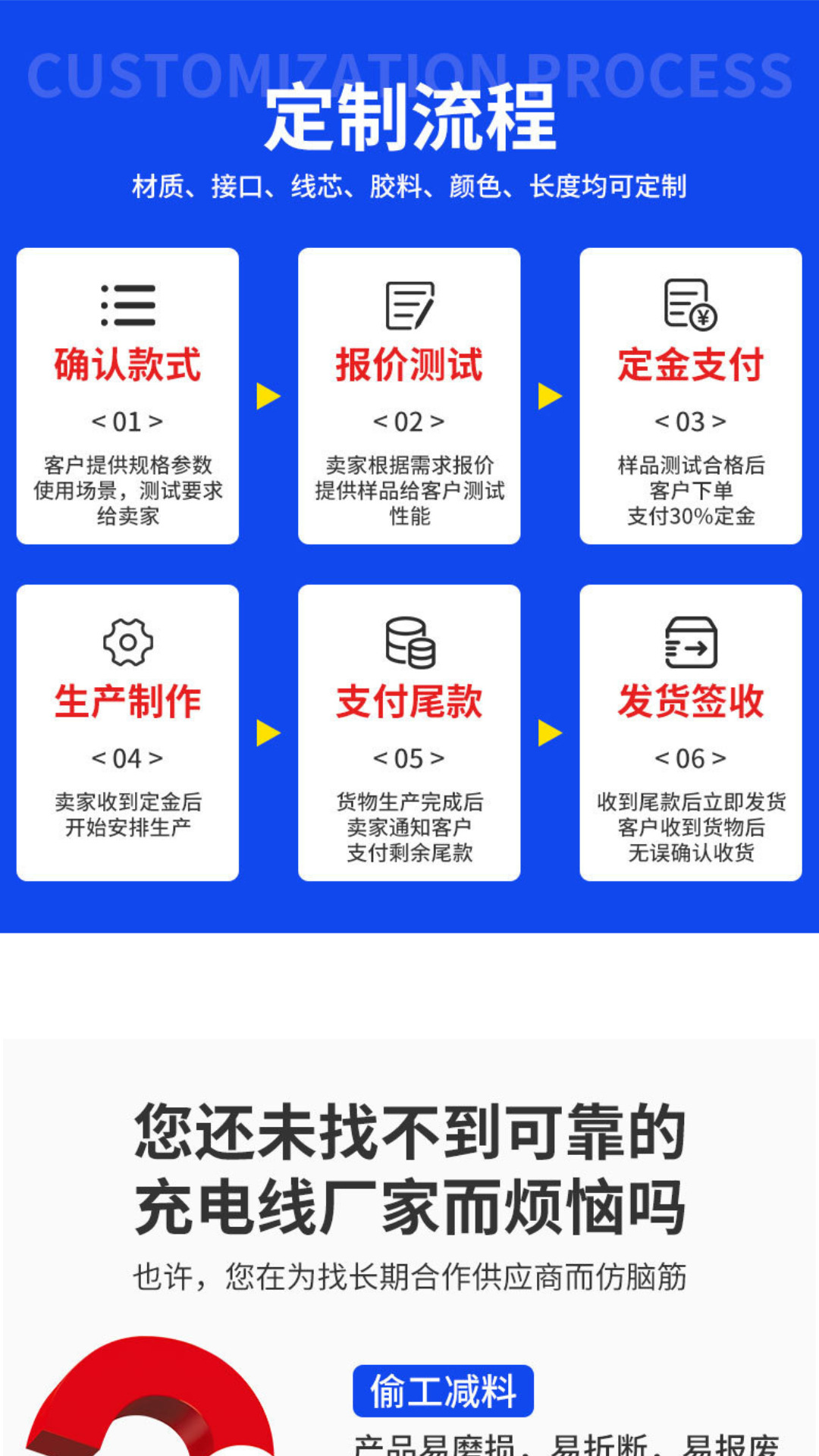 1、采用纯铜芯,铜芯直径标准,充电稳定。