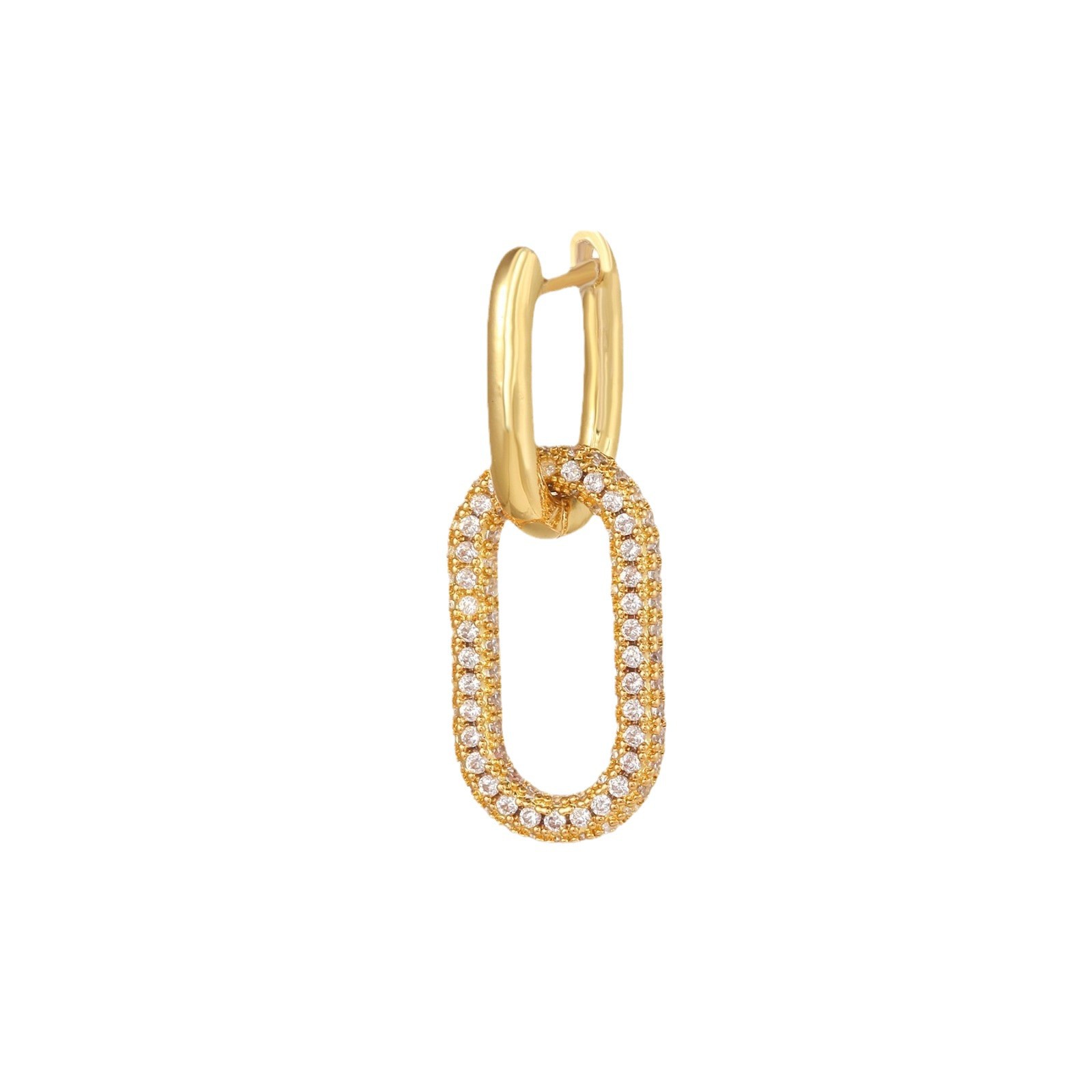 欧美时尚18K金镶锆石耳环 几何镂空个性长方耳扣ins风女单个批发 English | 投诉