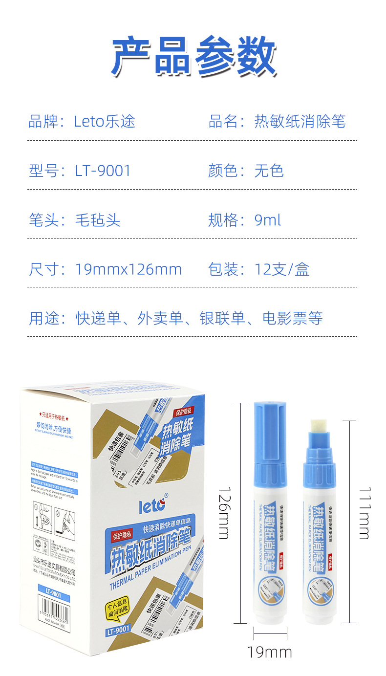 产品名称:热敏纸消除笔 墨水容量9ml
