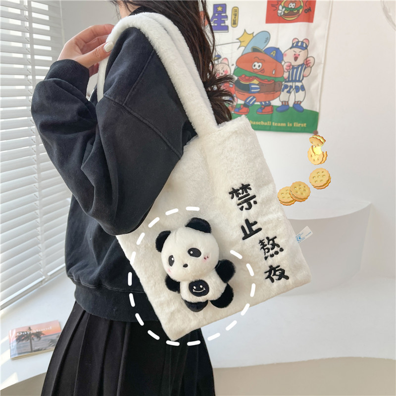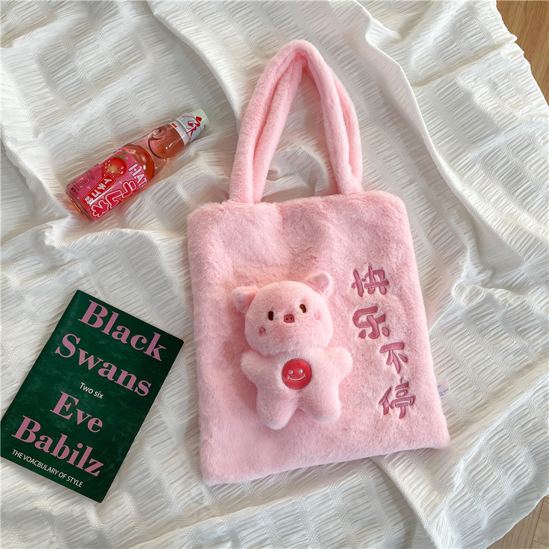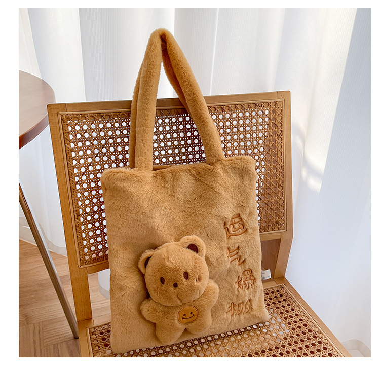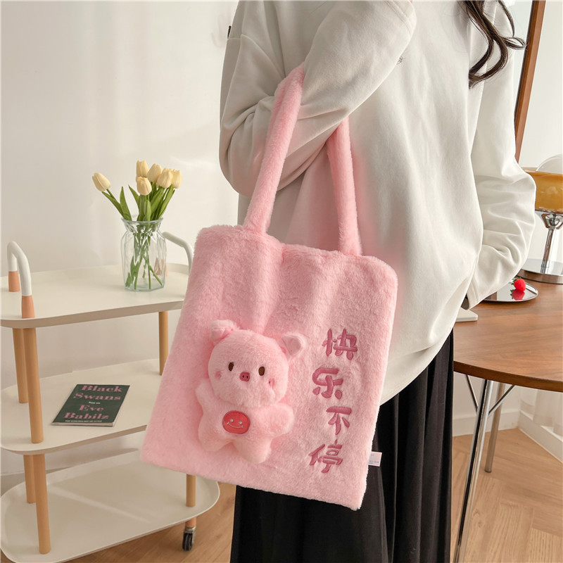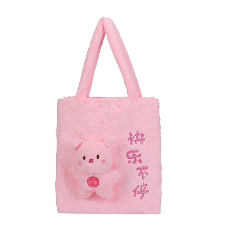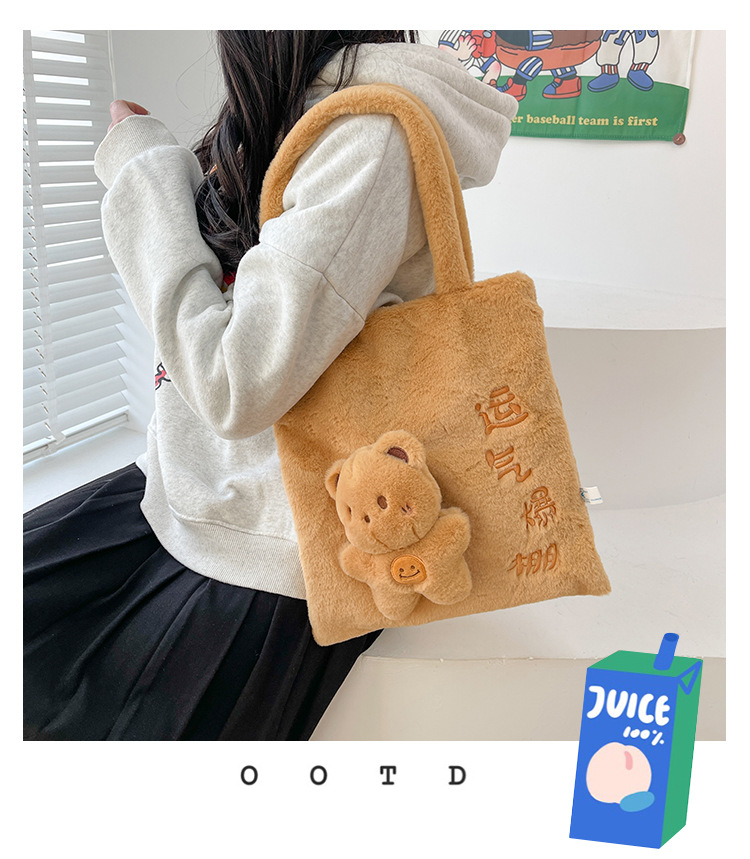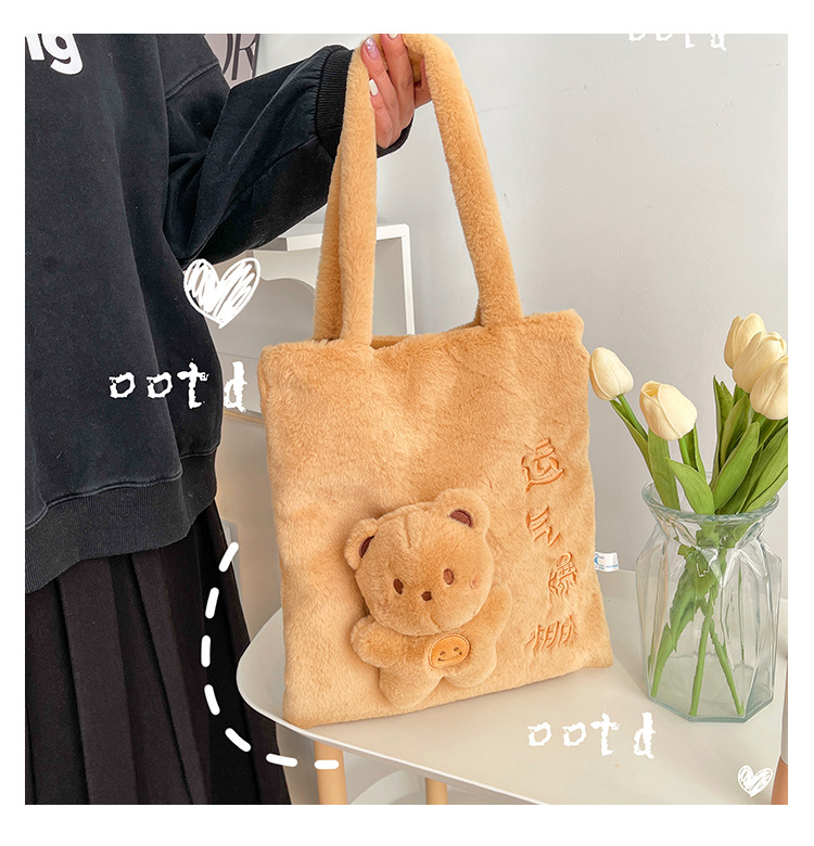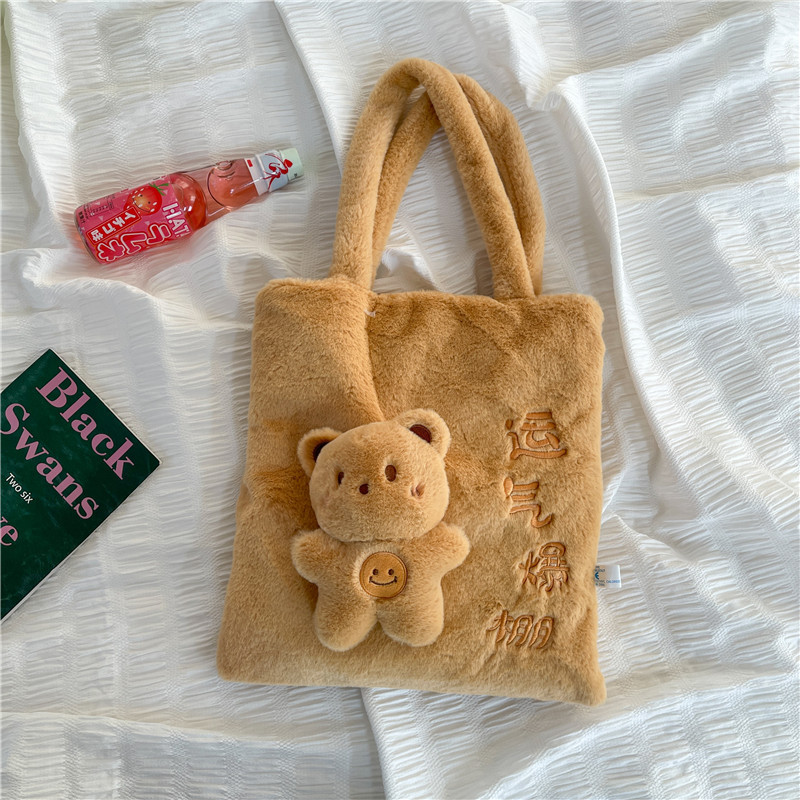 韩版可爱毛绒单肩包2023新款卡通公仔手提包少女软萌毛毛托特包女