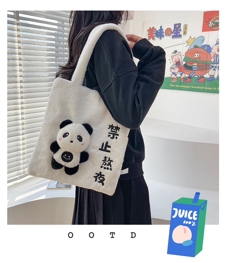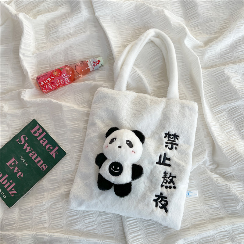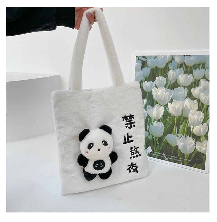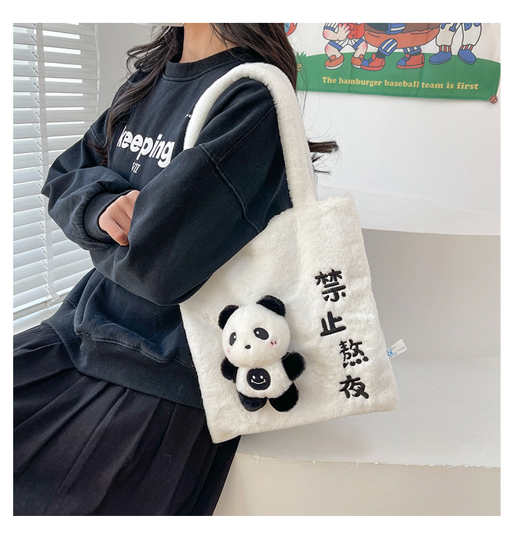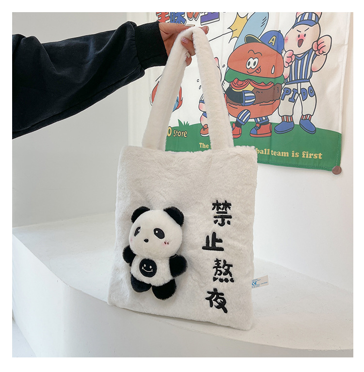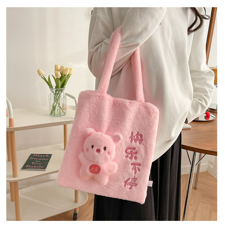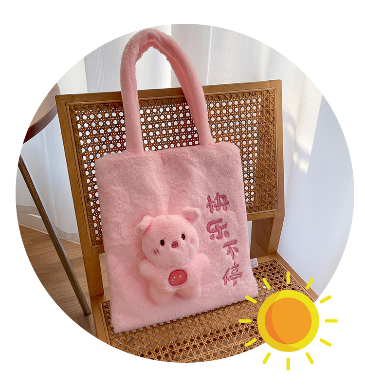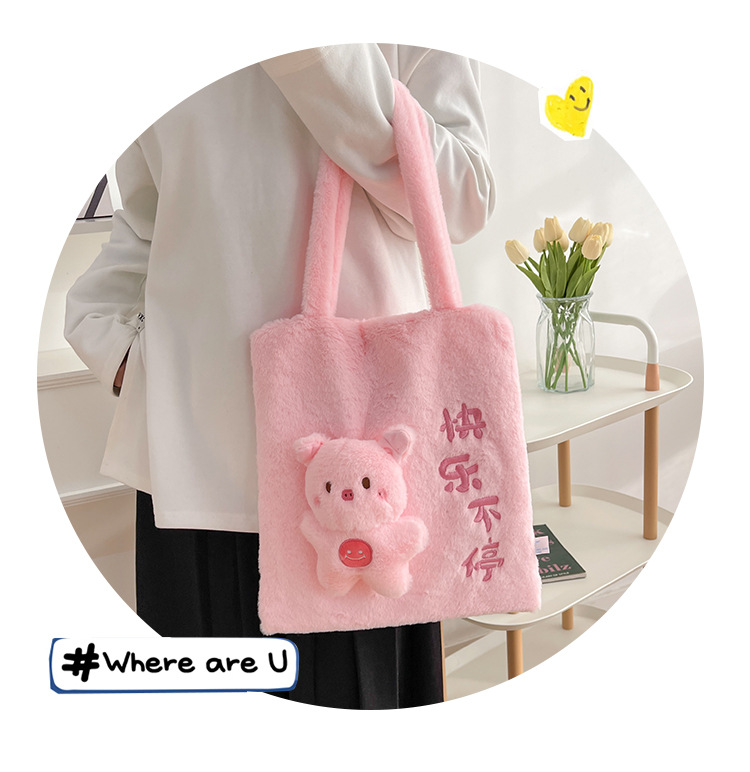 韩版可爱毛绒单肩包2023新款卡通公仔手提包少女软萌毛毛托特包女 投诉