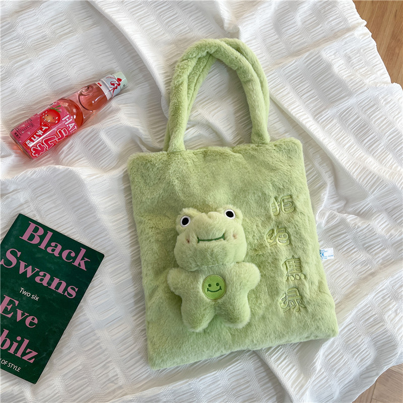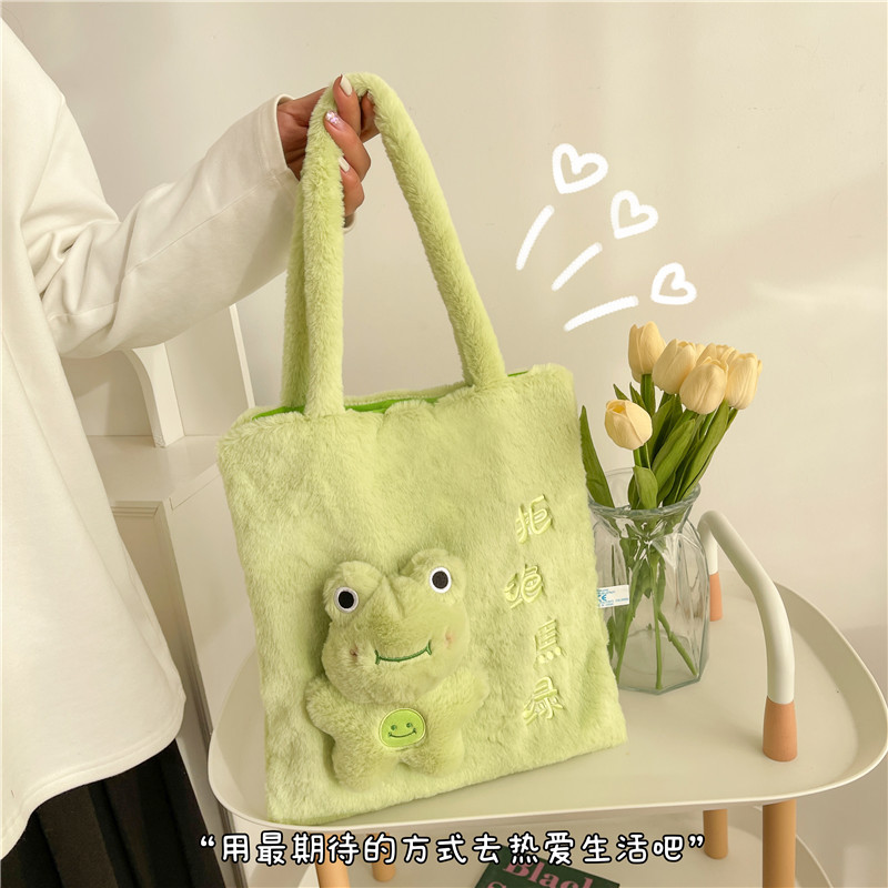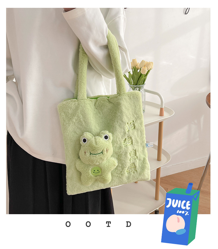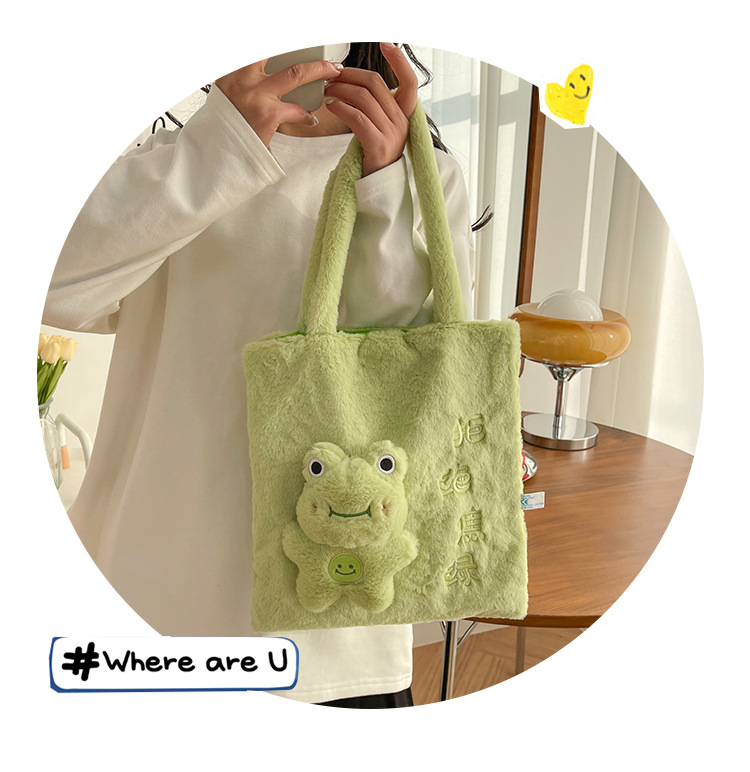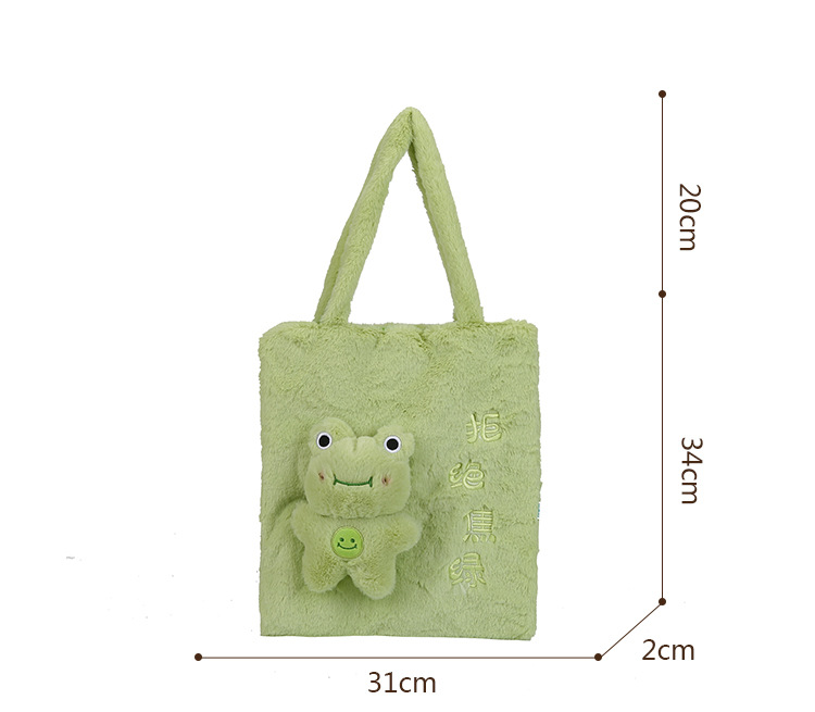颜色: 粉红色,绿色,白色,棕色 风格: 清新甜美 货号: 1688 材质: 毛绒 箱包潮流款式: 托特包 箱包大小: 中 流行元素: 29451 上市年份季节: 2023年春季 里料质地: 棉 箱包形状: 竖款方型 重量: 0.2 kg/个