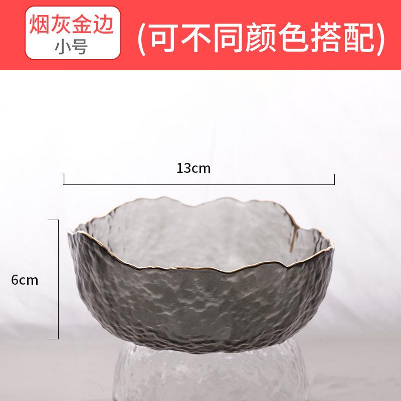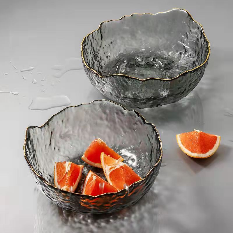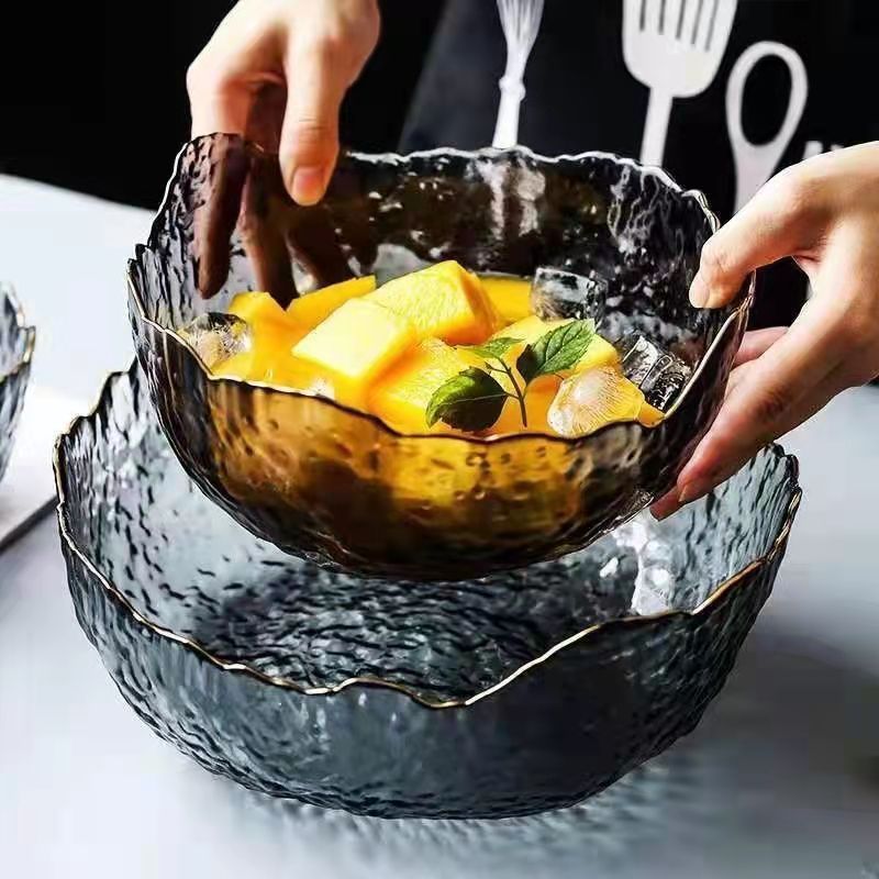 INS金边不规则玻璃碗沙拉锤纹碗创意个性家用泡面碗网红碗水果盘 English | 投诉