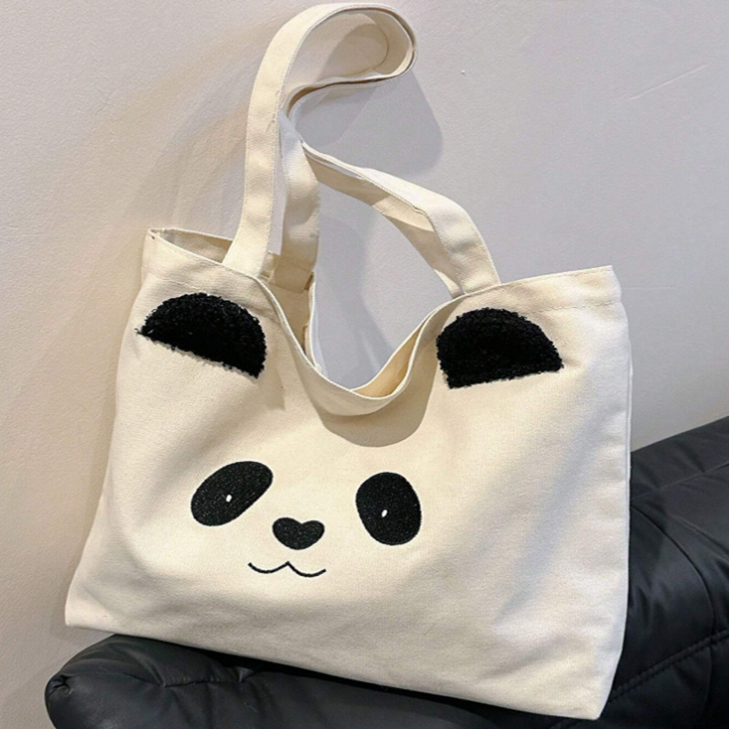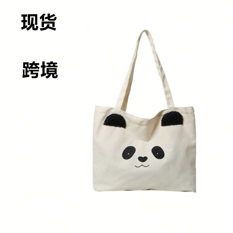 跨境可爱熊猫卡通单肩帆布大容量手提包