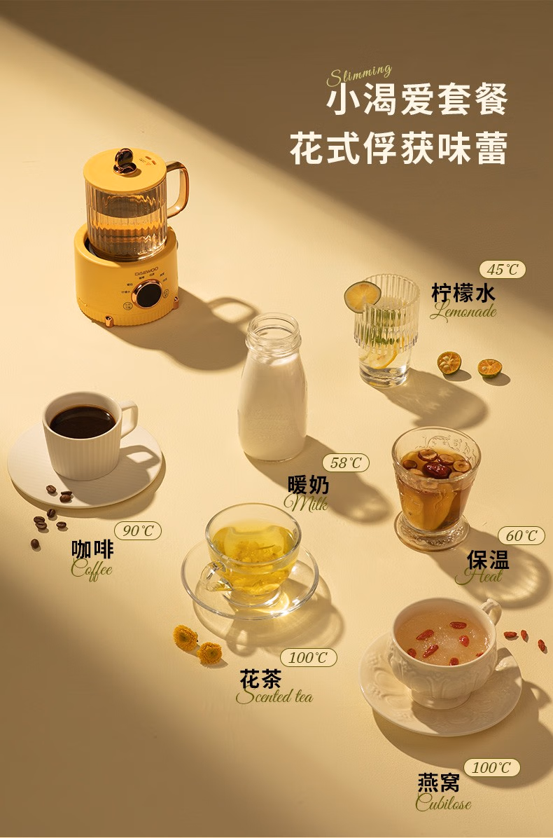 花茶、燕窝、暖奶、咖啡、柠檬水、保温等,满足日常养生。