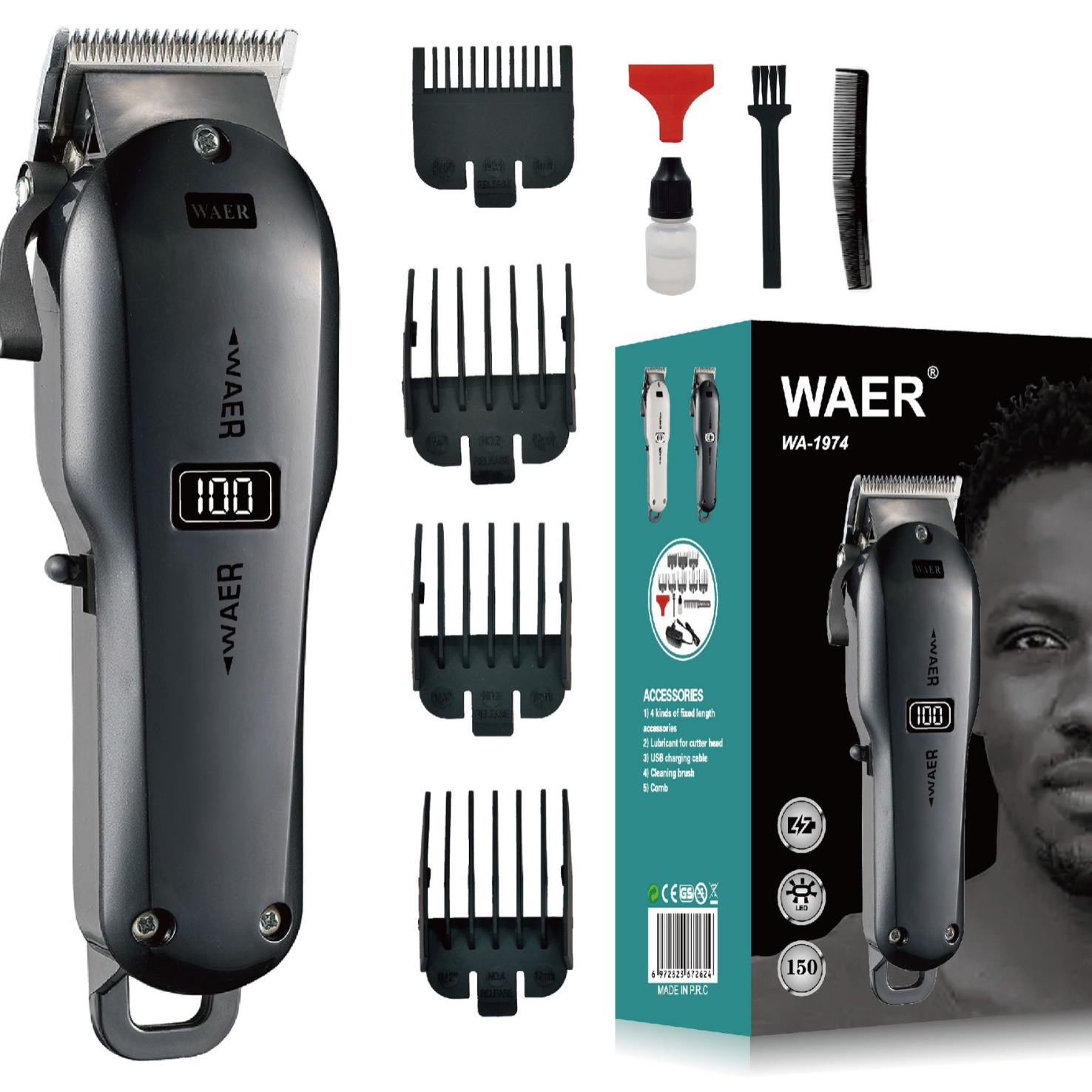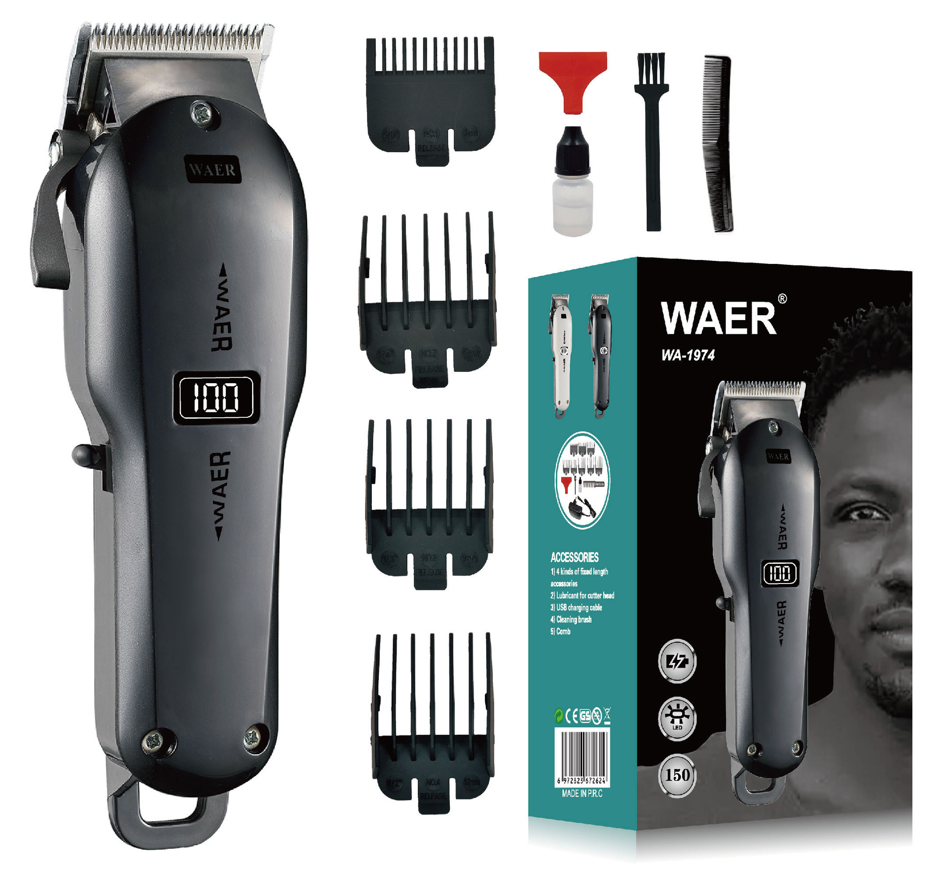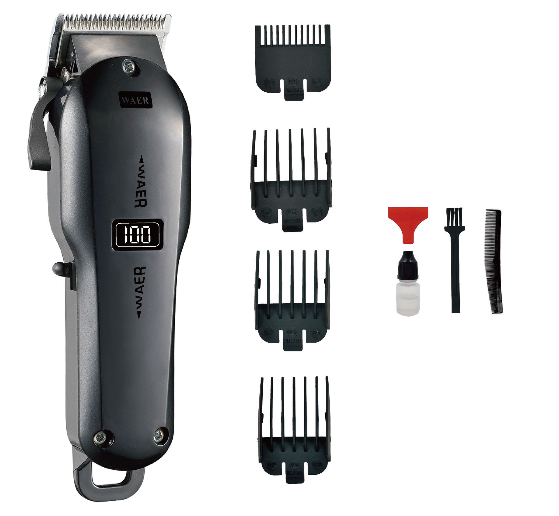 产品配件:主机,充电线,毛刷,润滑油,限位梳