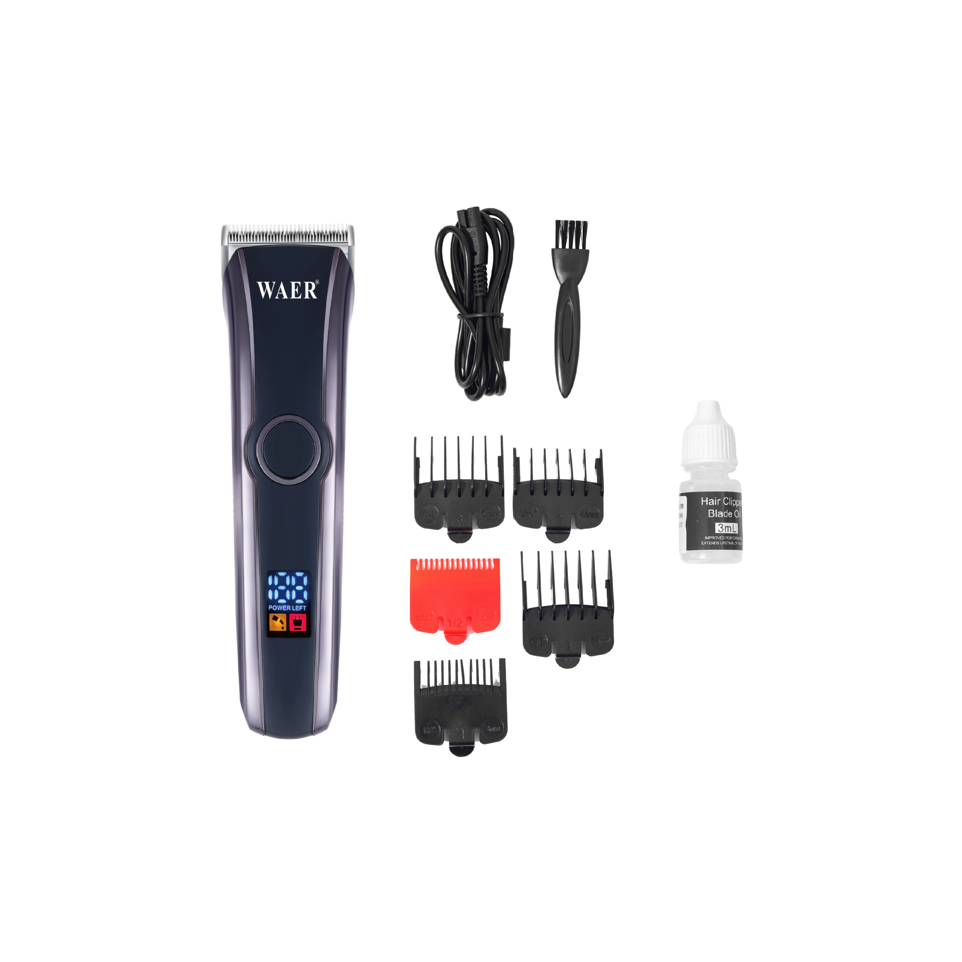 产品配件:主机,充电线,毛刷,润滑油,限位梳