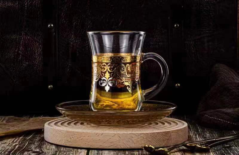 创意透明玻璃水杯跨境货源玻璃杯烫金浮雕花玻璃咖啡杯拿铁杯 English | 投诉