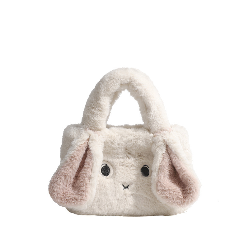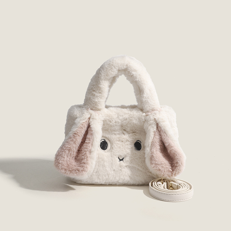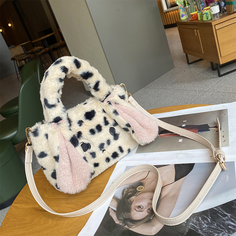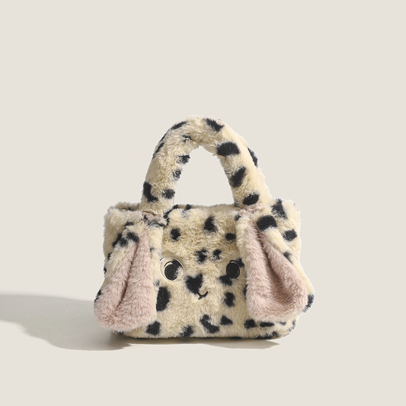 可爱斑点兔子毛绒手提包2024冬季爆款毛绒包时尚百搭单肩斜挎包