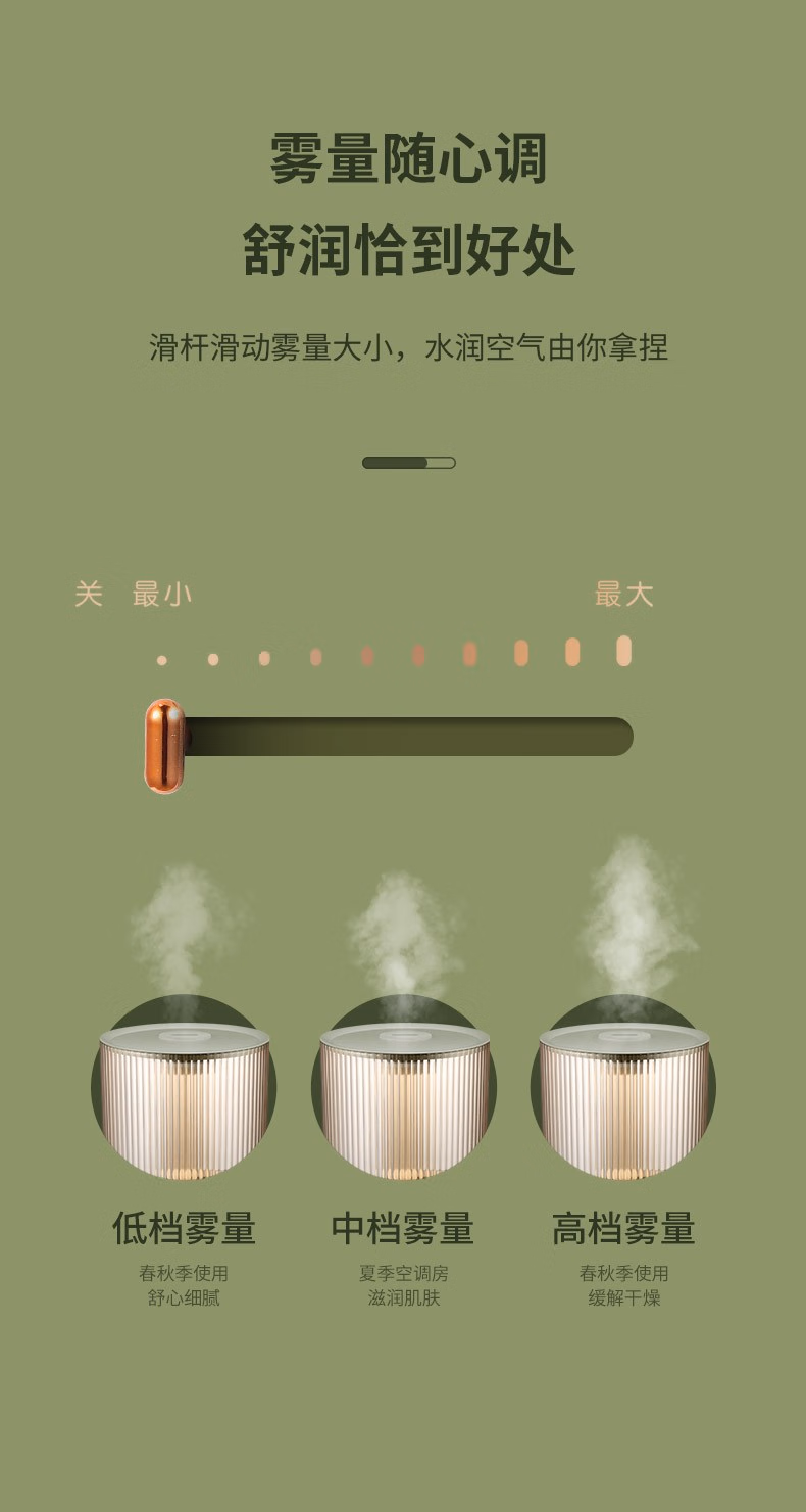 3、两档可选,滑杆调节雾量大小,操作简单,大小两档雾量可选。