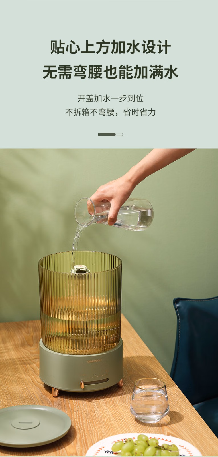 4、大口径水箱,一体式水箱,开盖即可加水/清洗,方便省心。