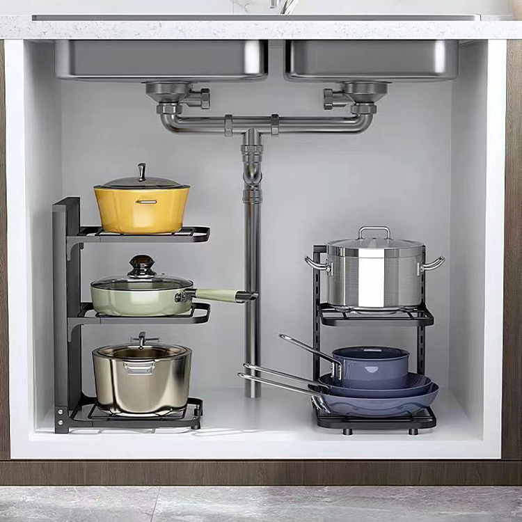 锅具置物架下水槽多层家用厨房置物架厂家批发 碳钢锅具收纳架子
