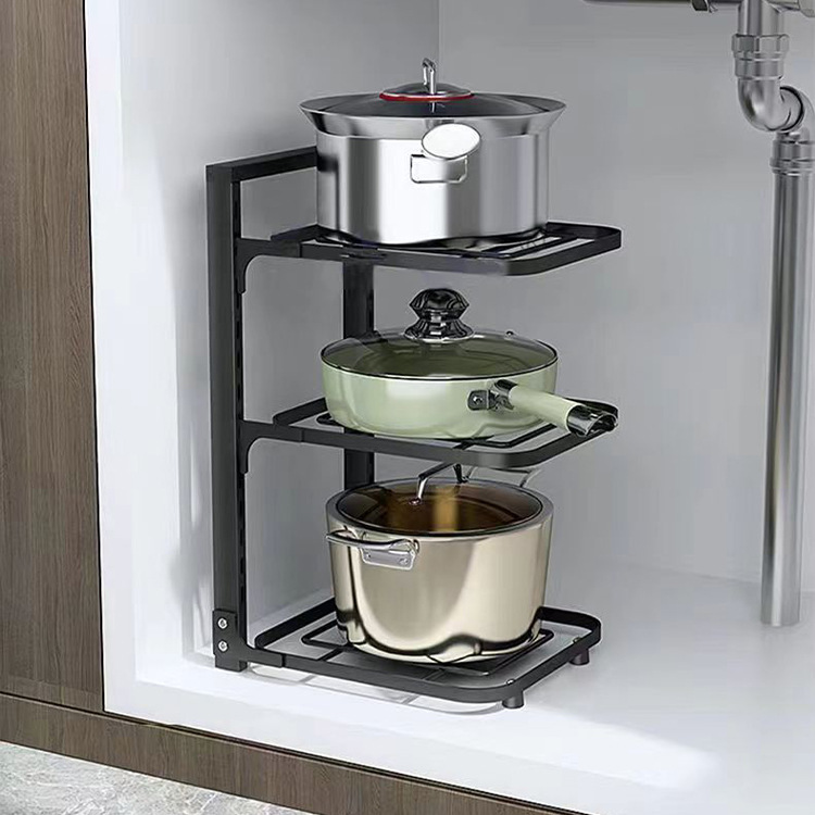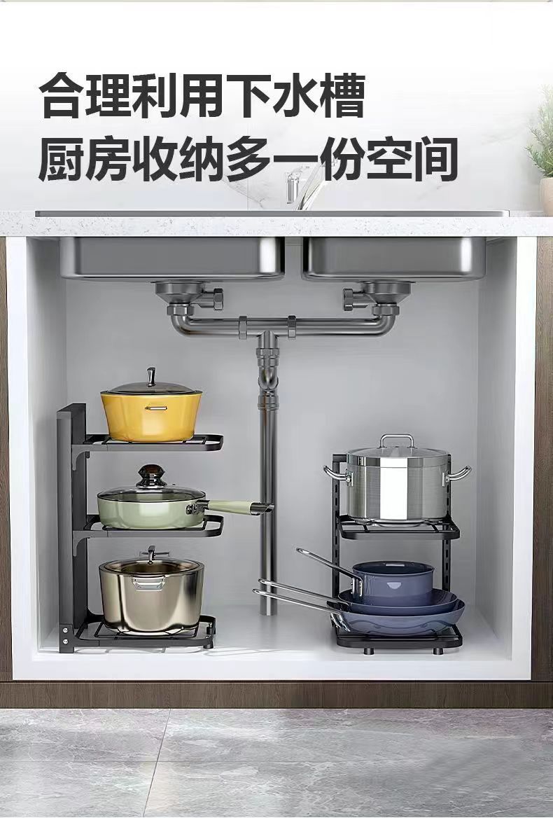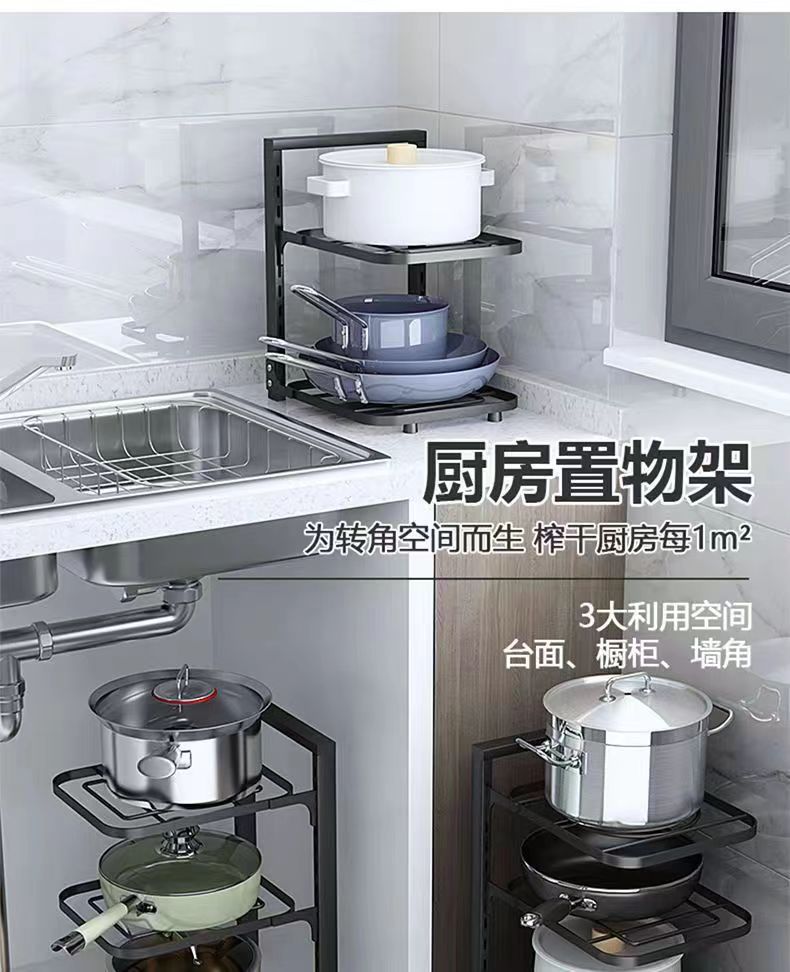 锅具置物架下水槽多层家用厨房置物架厂家批发 碳钢锅具收纳架子 投诉