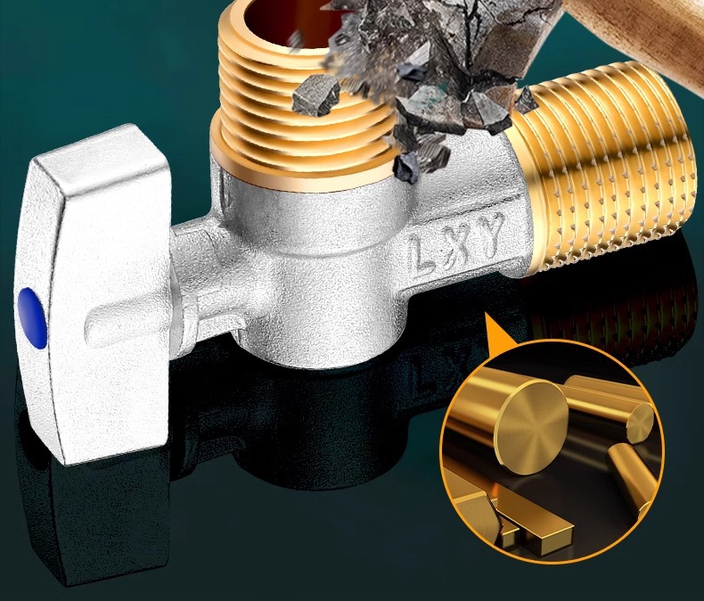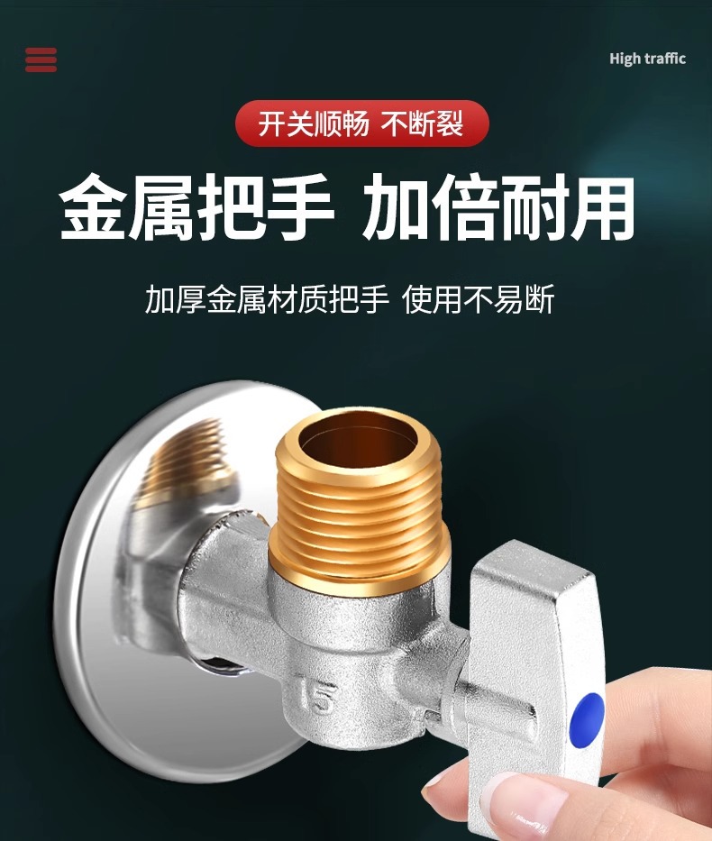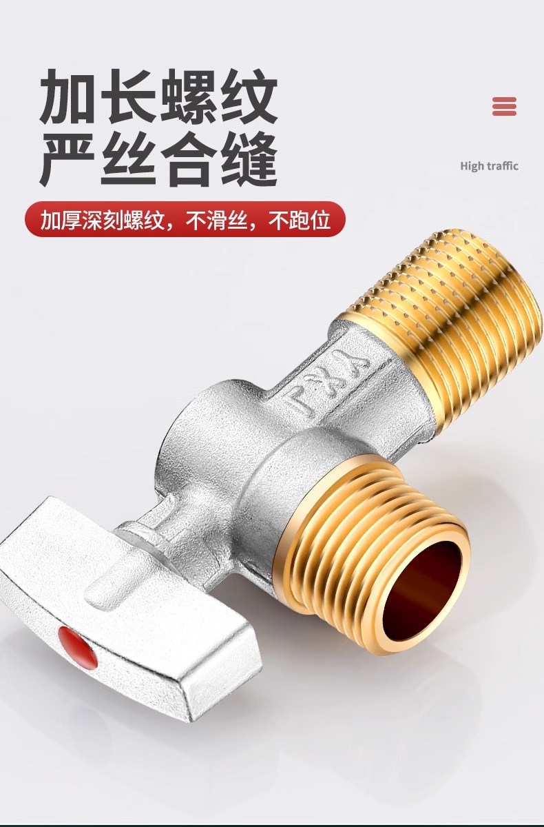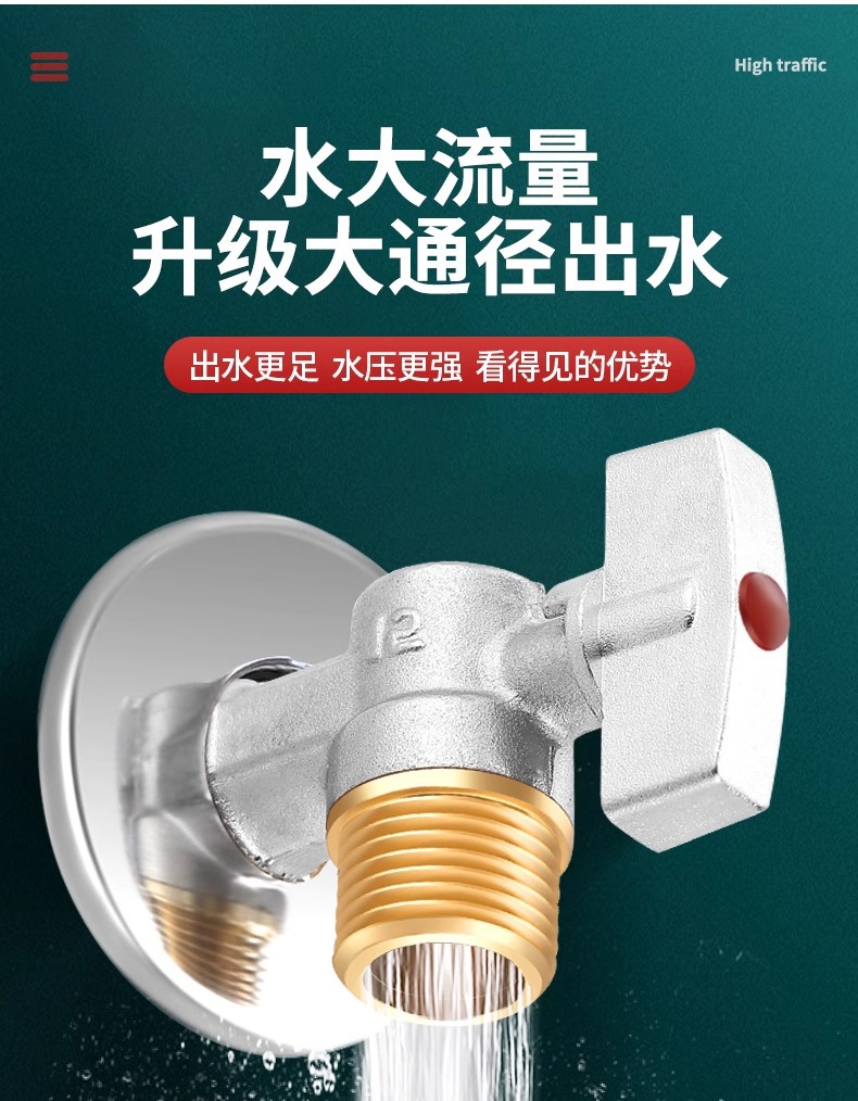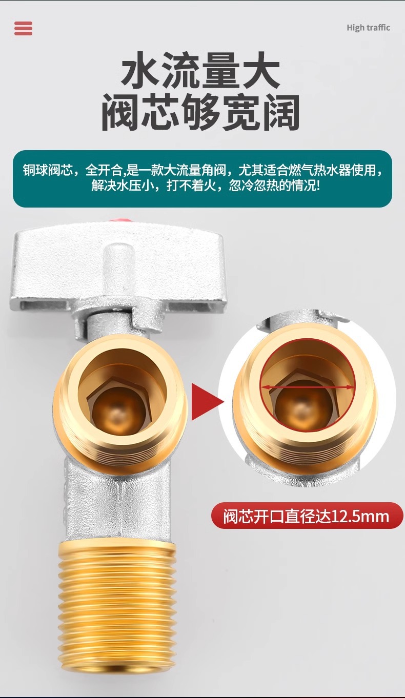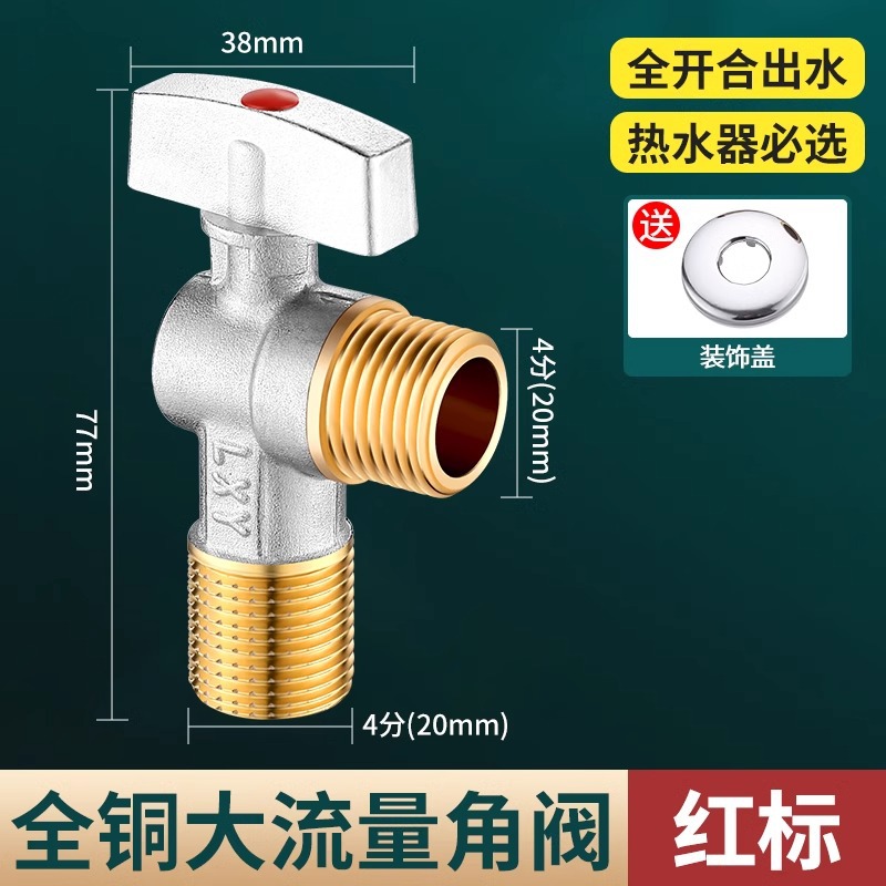 球芯全开大流量角阀全铜冷热水燃气热水器专用球阀三角阀开关4分