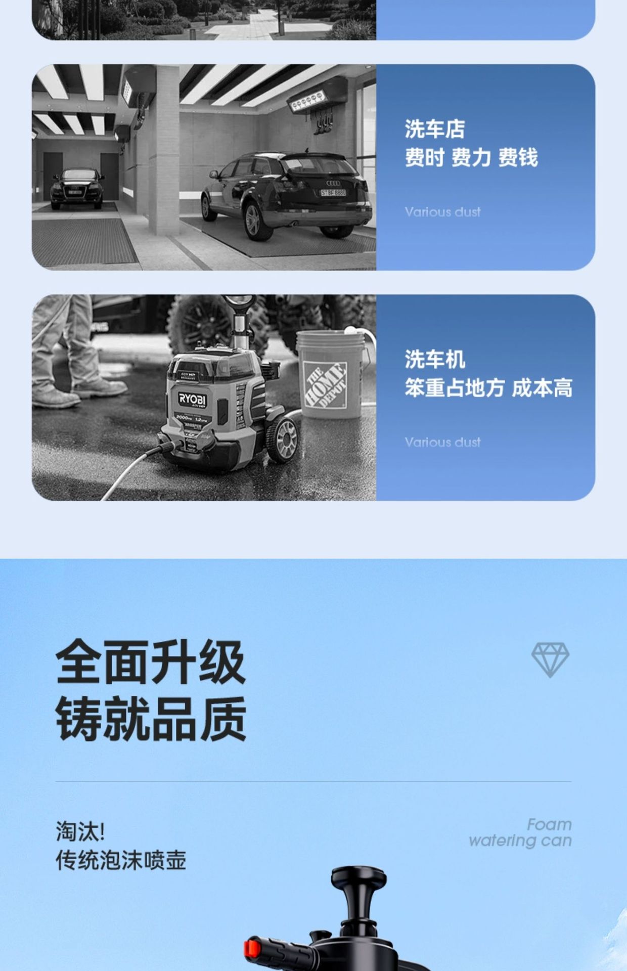 跨境洗车泡沫喷壶手持家用洗车液打泡沫神器高压pa壶擦车全套工具 投诉