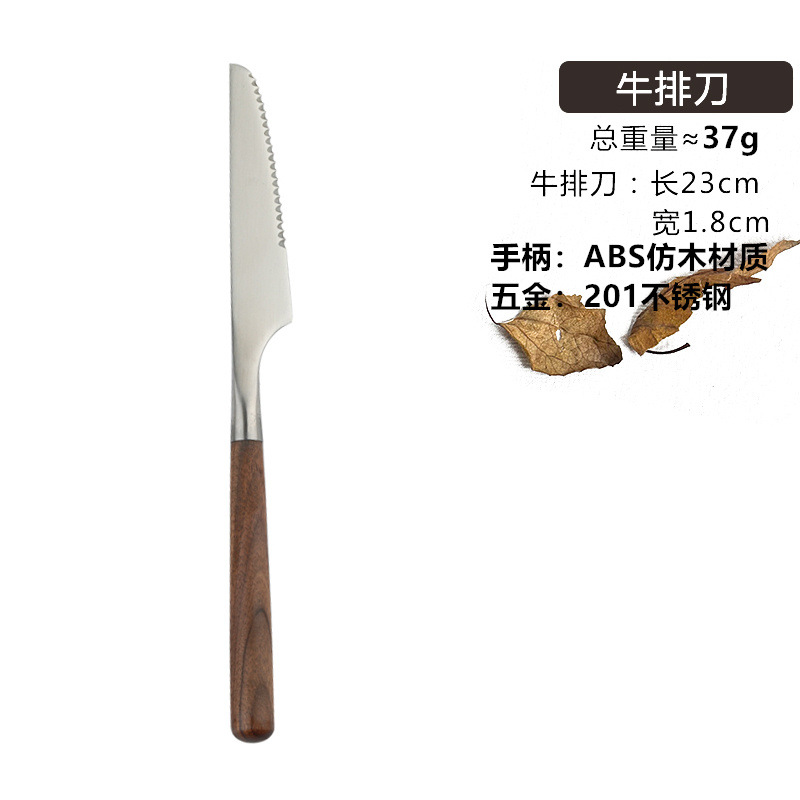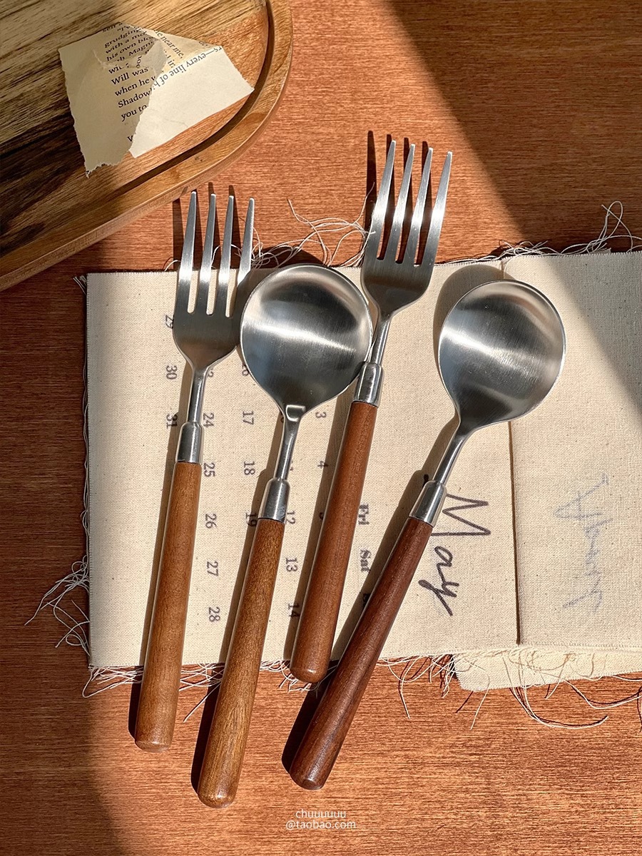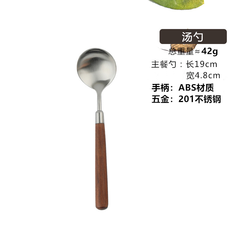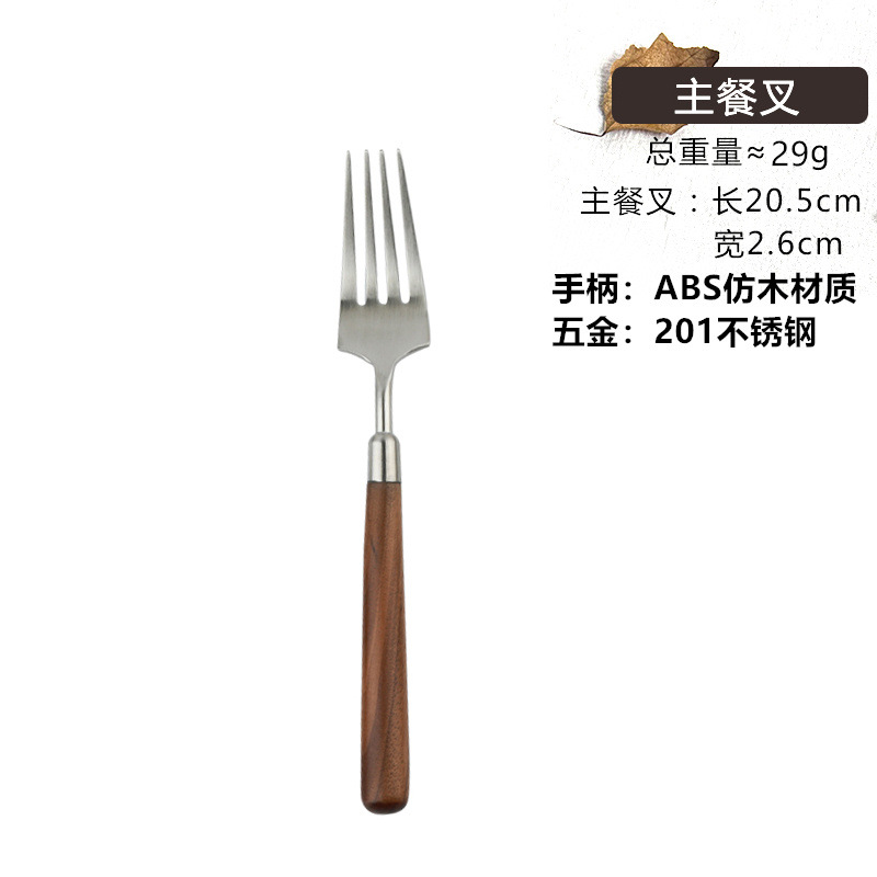 仿胡桃木柄简约质感不锈钢勺子叉子套装家用西餐餐勺高颜值餐具 投诉