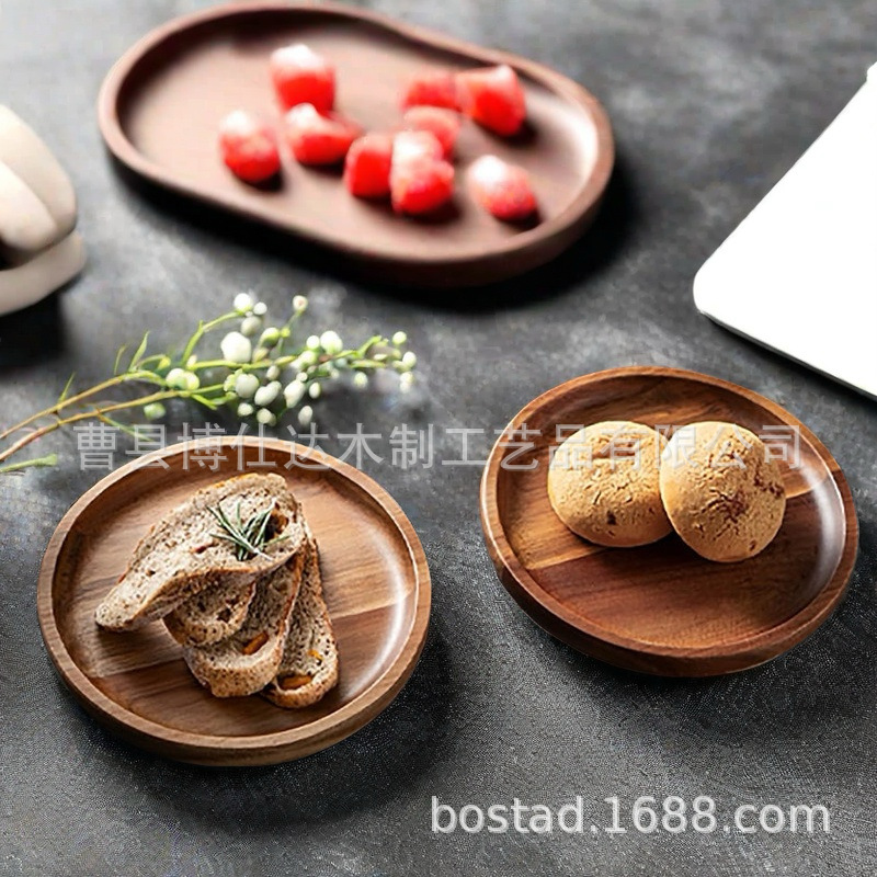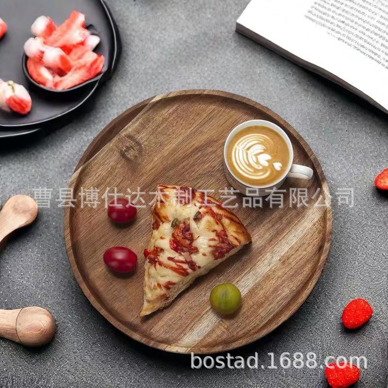 日式相思木木盘子木质托盘圆盘实木家用餐具创意干果茶点心水果盘
