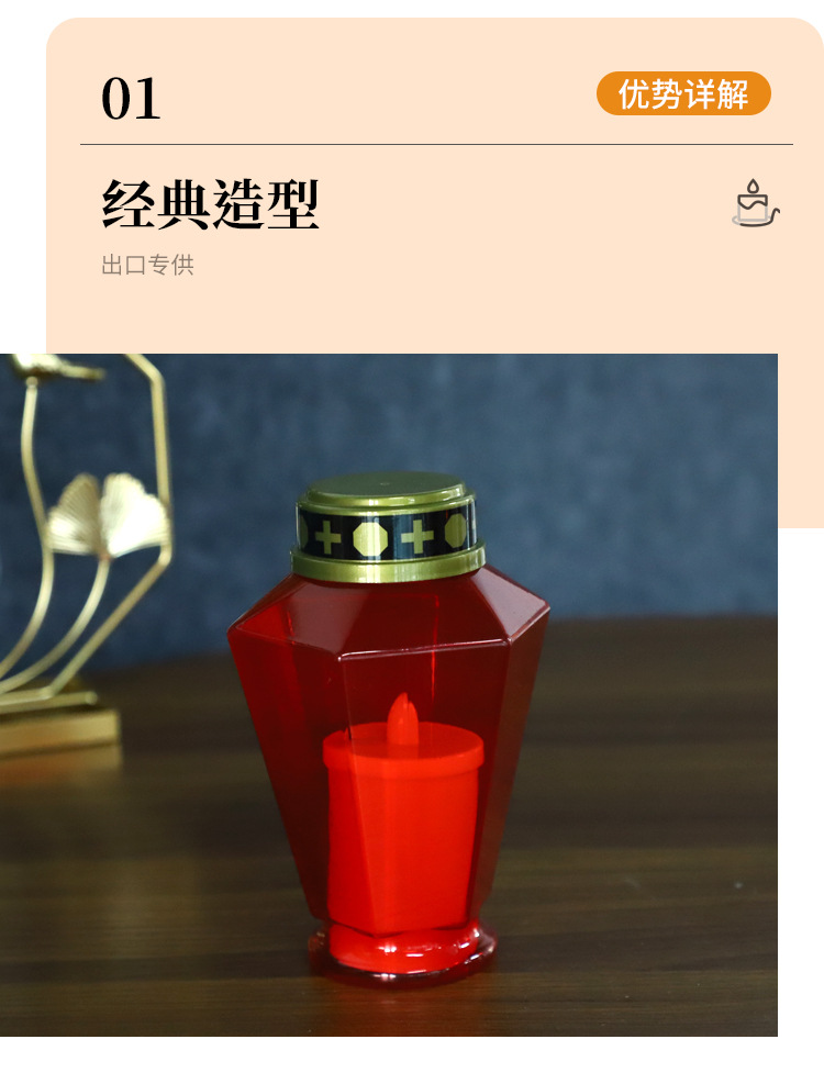 欧美创意LED蜡烛墓地坟墓灯户外防水祷告清明道具灯装饰长明灯
