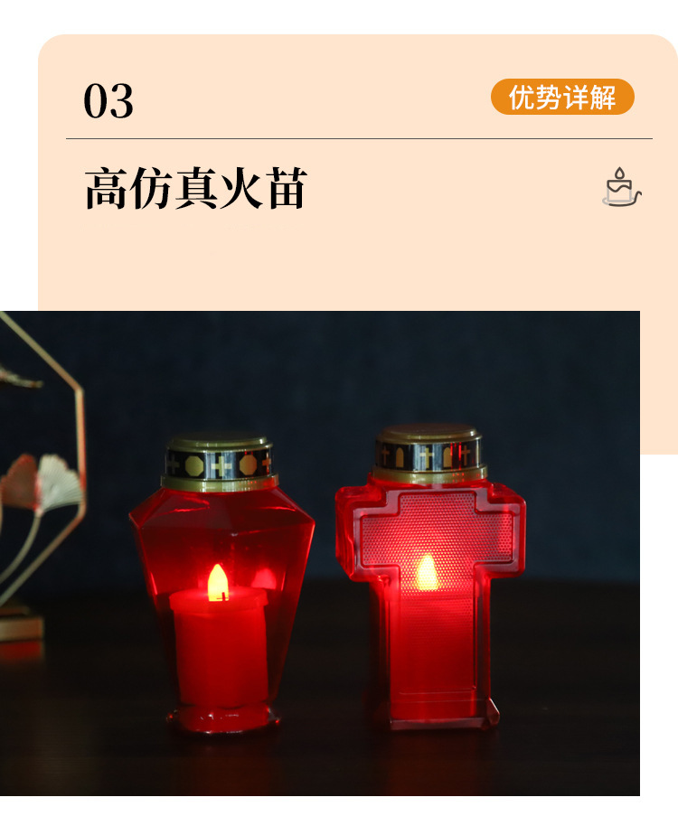 欧美创意LED蜡烛墓地坟墓灯户外防水祷告清明道具灯装饰长明灯 投诉