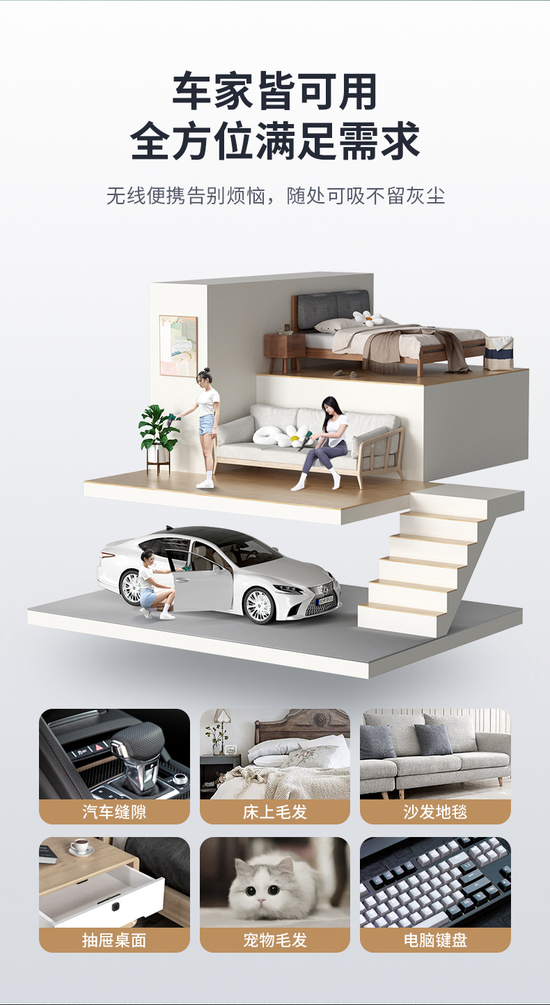 汽车手持吸尘器家用迷你小无线吸尘器无刷大吸力抽充气吹风手持式