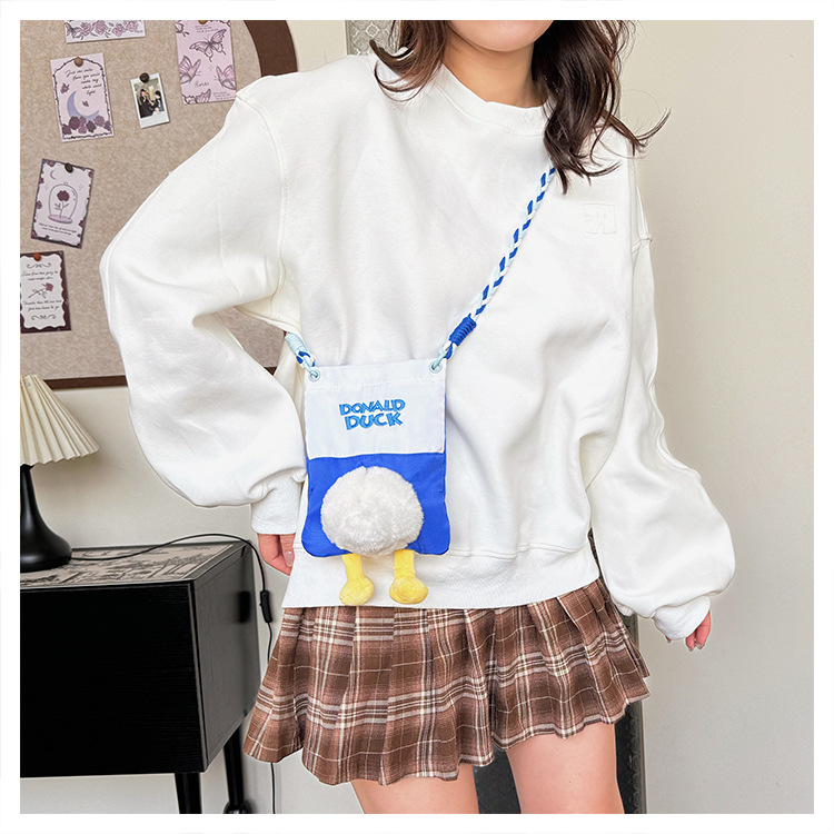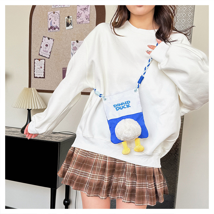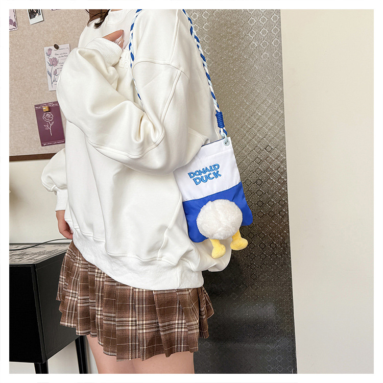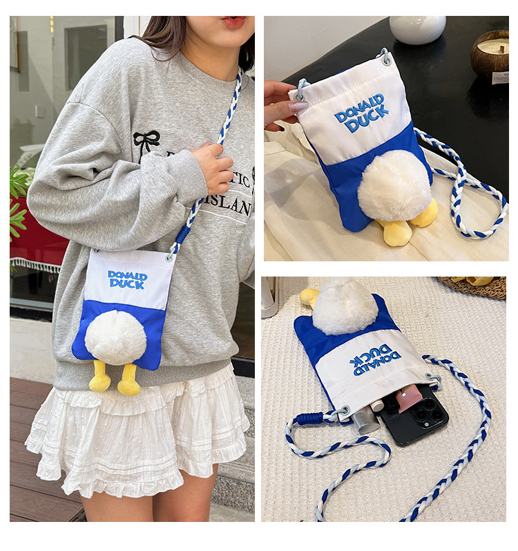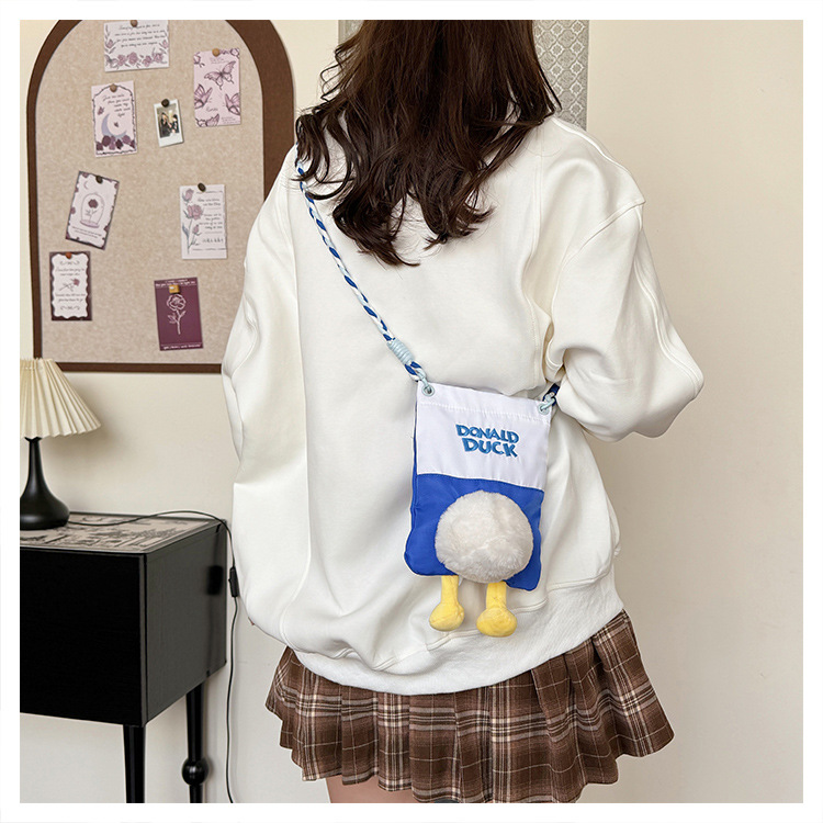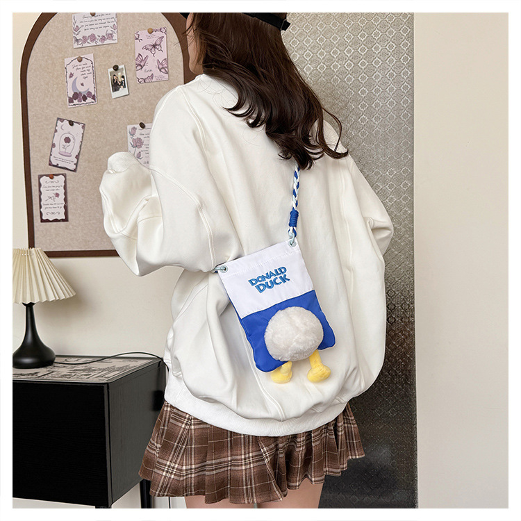 新款手机女包女毛绒玩偶鸭子挂件屁屁帆布包可爱日常时尚斜挎女包