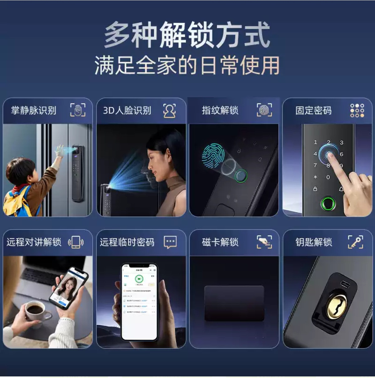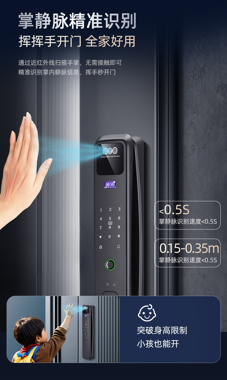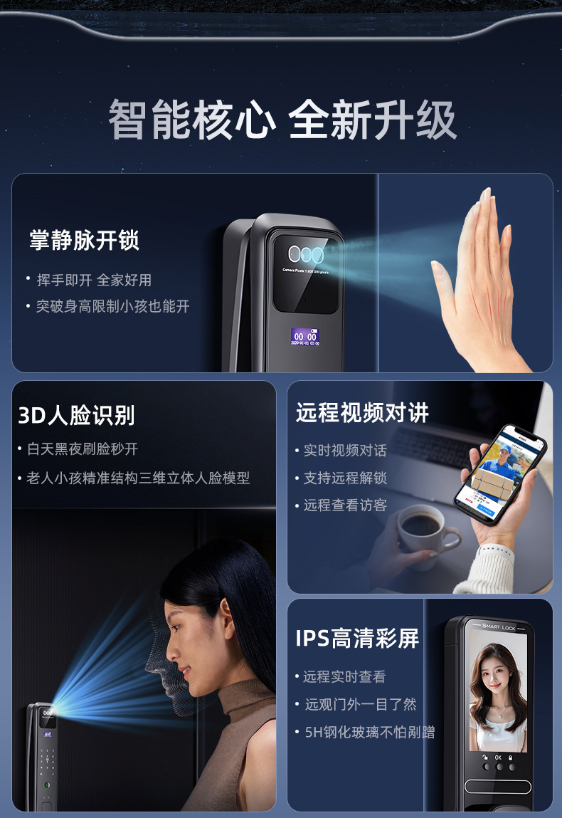 高端家用防盗门指纹锁密码锁全自动人脸识别智能锁入户门带监控