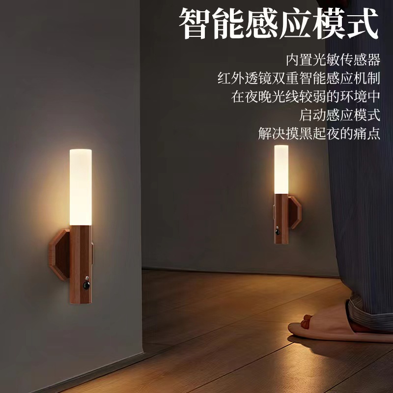 跨境充电LED智能人体感应小起夜灯光控过道走廊壁灯卧室房间