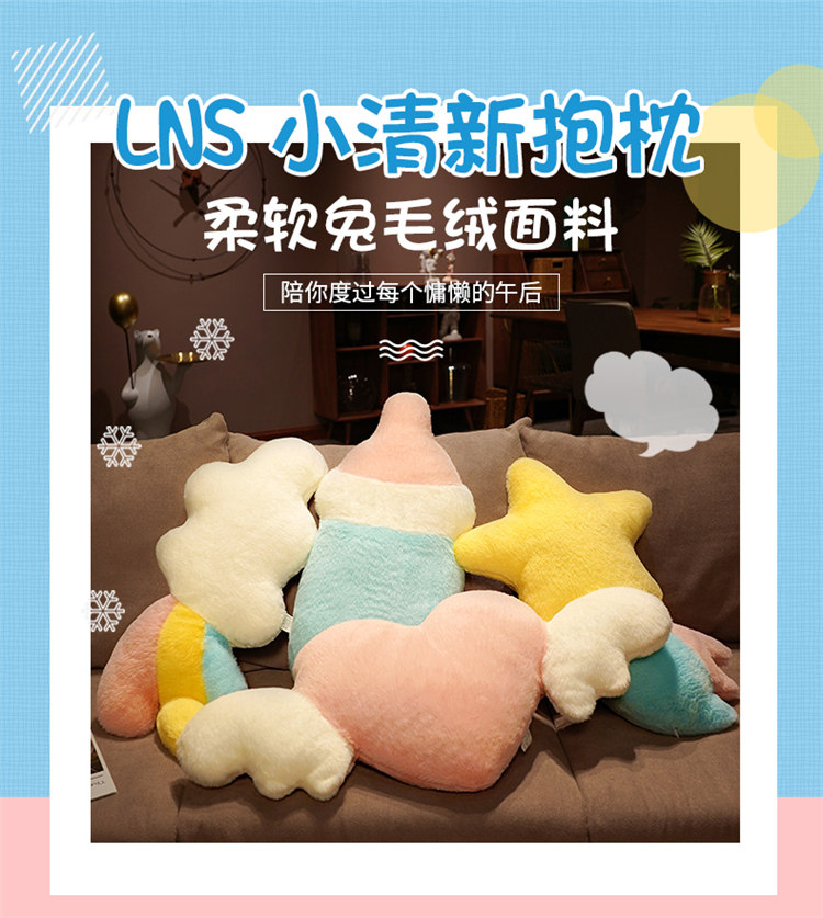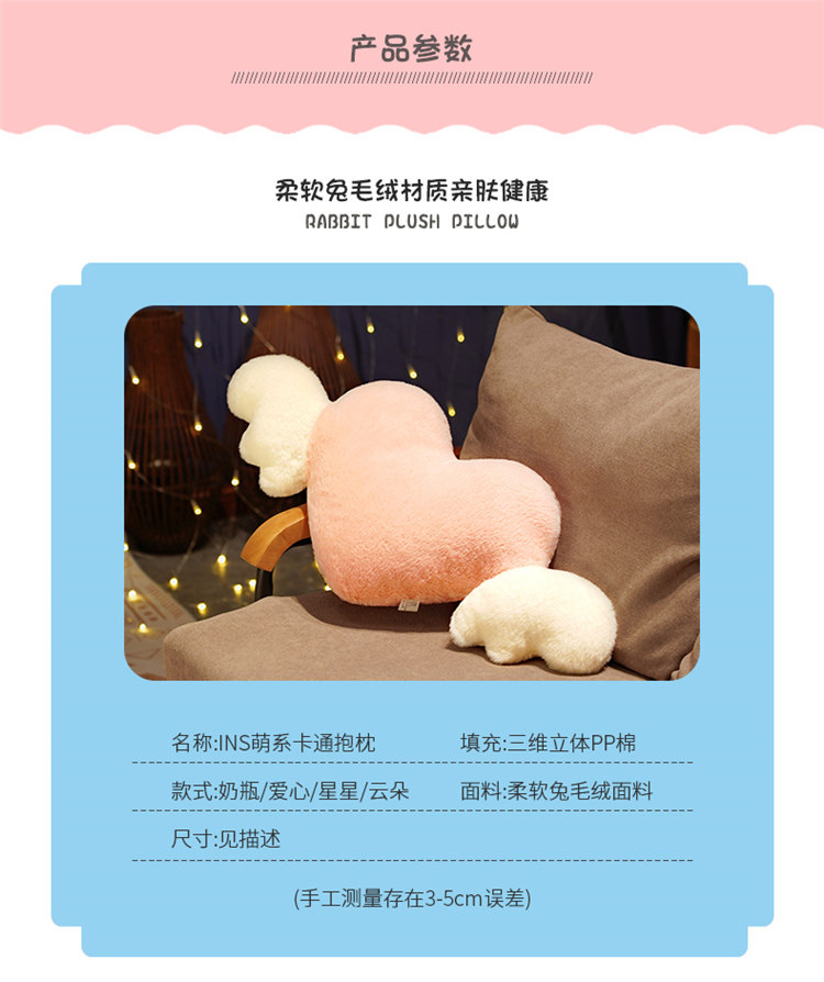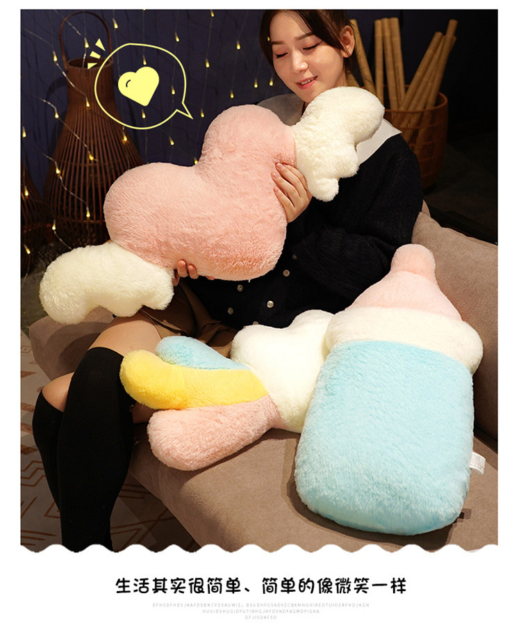卡通奶瓶抱枕云朵靠垫许愿星星公仔爱心天使翅膀毛绒玩具女生礼物 English | 投诉