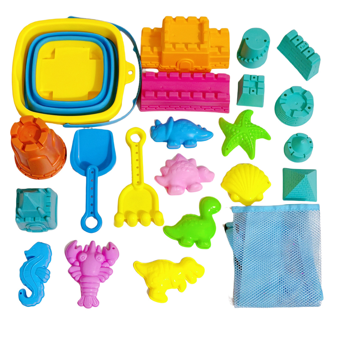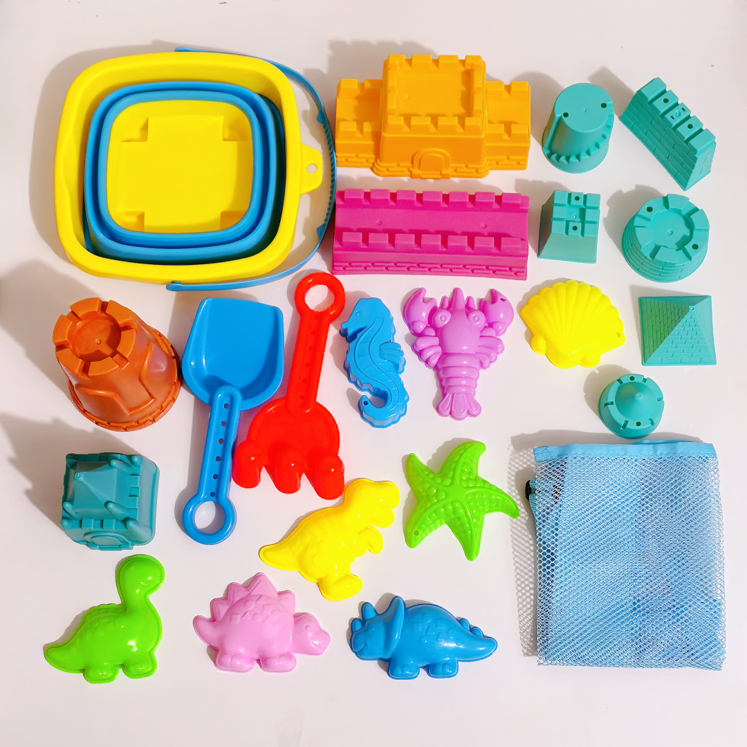 跨境儿童沙滩玩具折叠桶城堡模型套装海边海洋戏水玩沙挖土工具