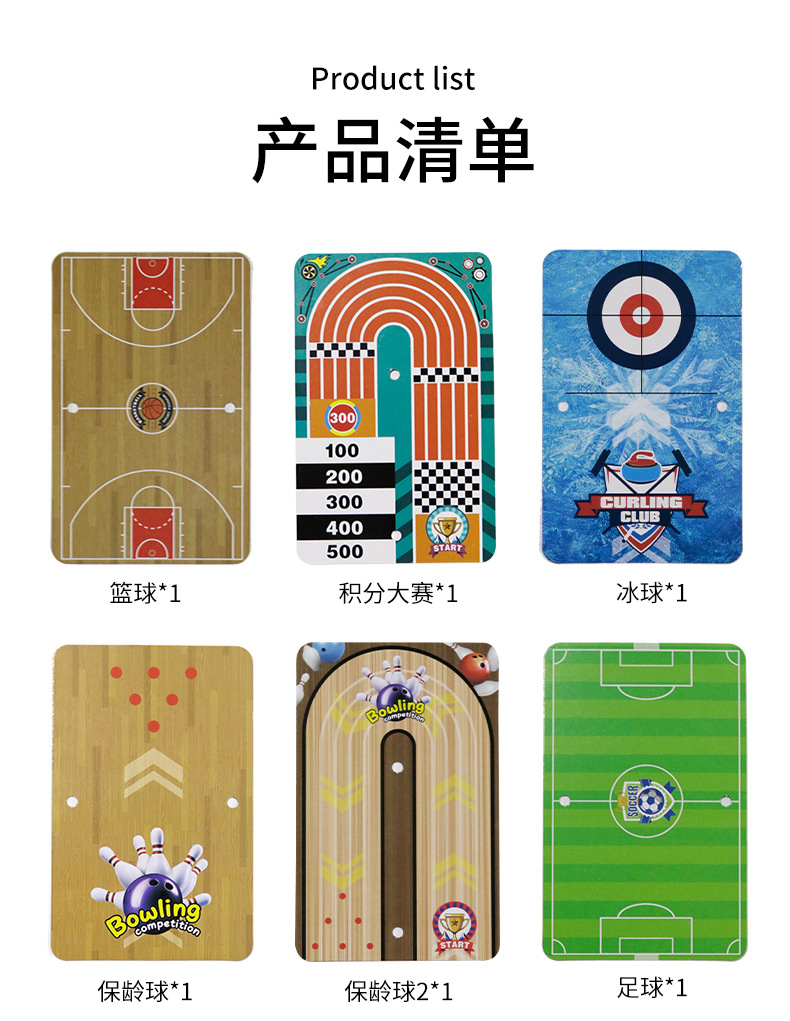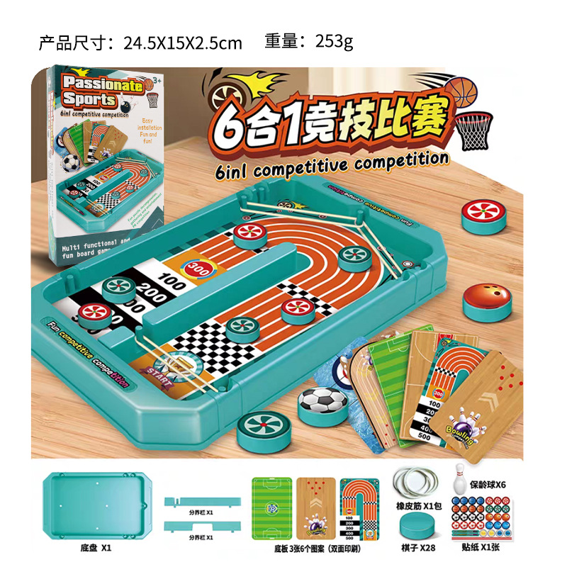 跨境6合1桌面游戏足球保龄球冰壶双人对战竞技比赛棋牌益智小玩具