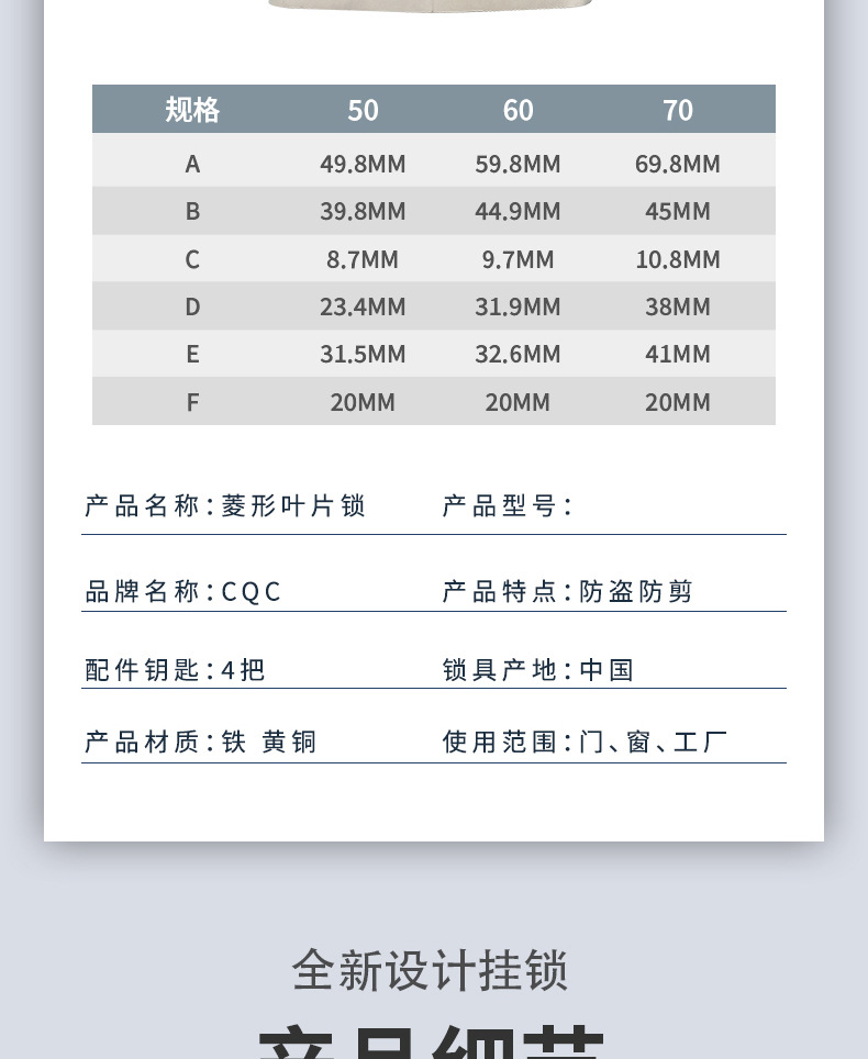 浦江鼎顺锁厂创立于2000年于2015年正式改名为浦江鼎顺锁业有限公司。公司秉承质量为主,诚信为本的经营理念。主要产品有大圆角叶片锁,方形叶片锁,矩形叶片锁,套壳叶片锁,包梁叶片锁,电脑矩形锁,一字矩形锁,套壳矩形锁,圆钢锁。千层锁,密码锁,报警锁,全铜密码锁,链条锁,圆饼锁,抗液压挂锁,同心锁,密码锁等等。公司有“CQC”和"THEMIS"等品牌。望广大新老客户前来咨询采购。