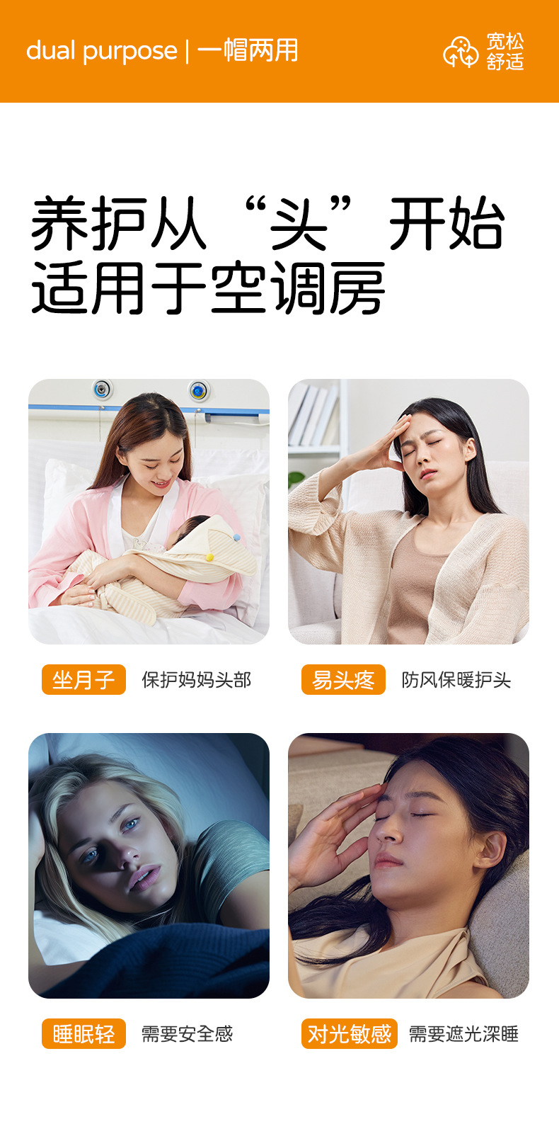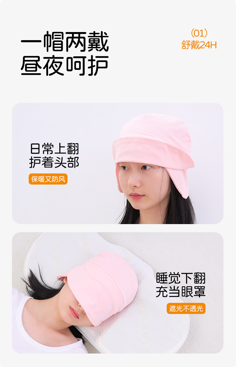 防风护头睡眠帽子睡觉遮光保暖孕妇头套防乱发月子帽睡帽四季通用