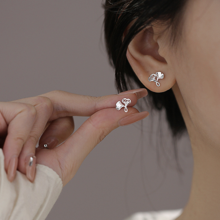 韩版百搭银杏叶耳钉女小巧时尚银杏叶螺旋拧扣耳骨钉高级感简约