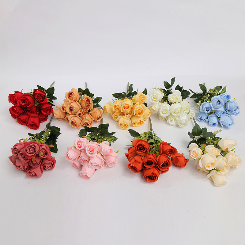 外贸10头玫瑰花公主玫礼堂布景手捧把束花大朵玫瑰仿真花假花 投诉