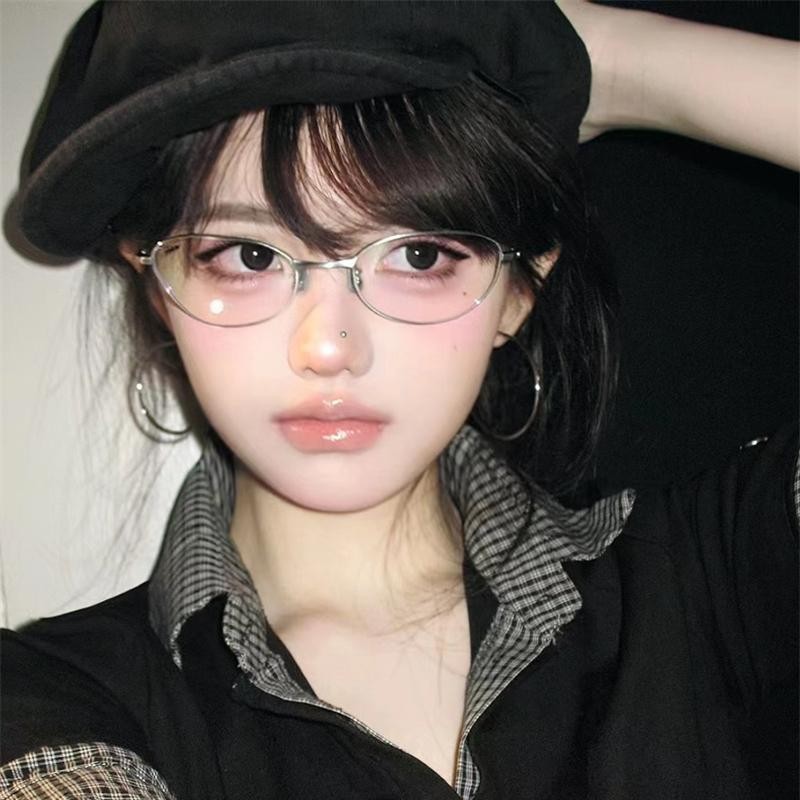 韩系时尚猫眼防蓝光平光镜高级质感女街拍素颜百搭近视装饰眼镜框