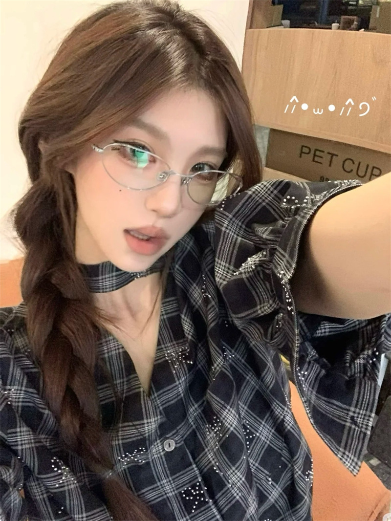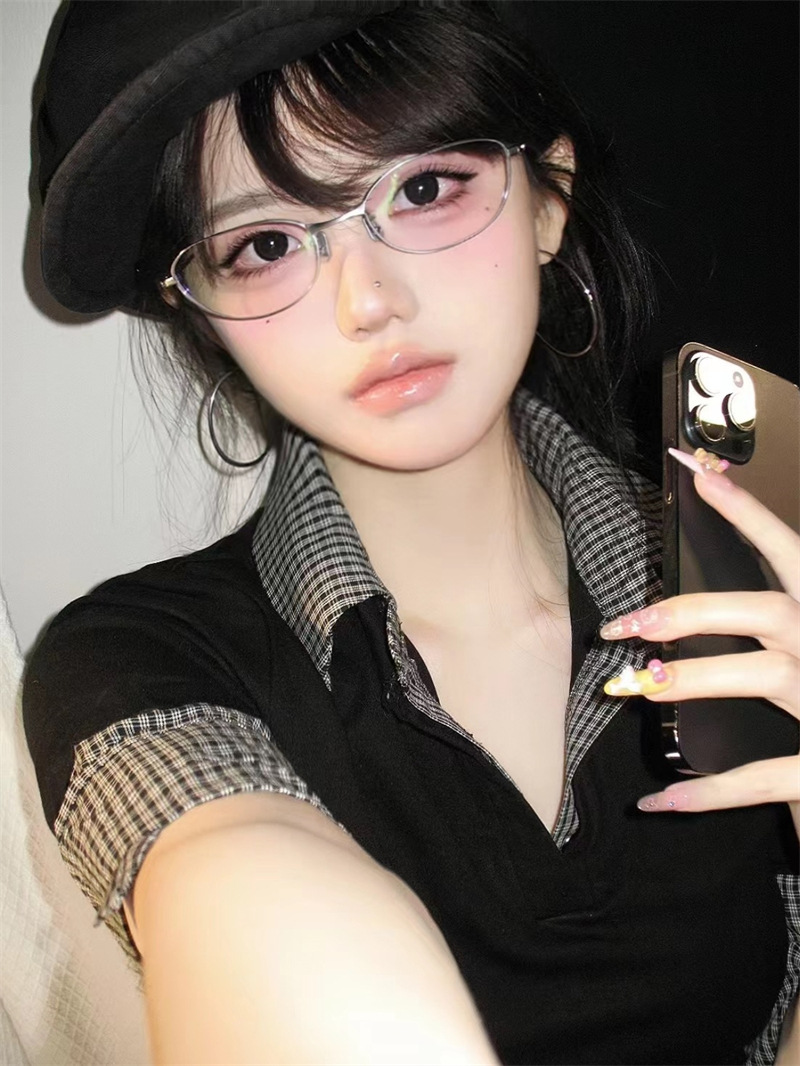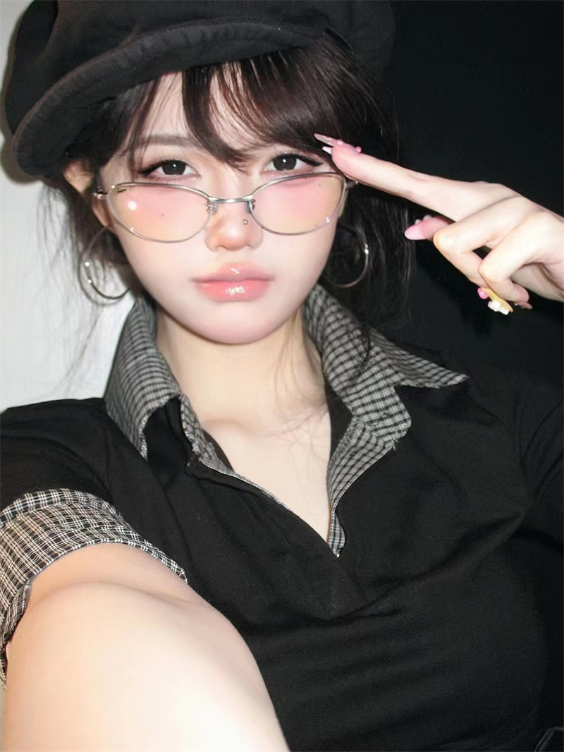韩系时尚猫眼防蓝光平光镜高级质感女街拍素颜百搭近视装饰眼镜框 投诉