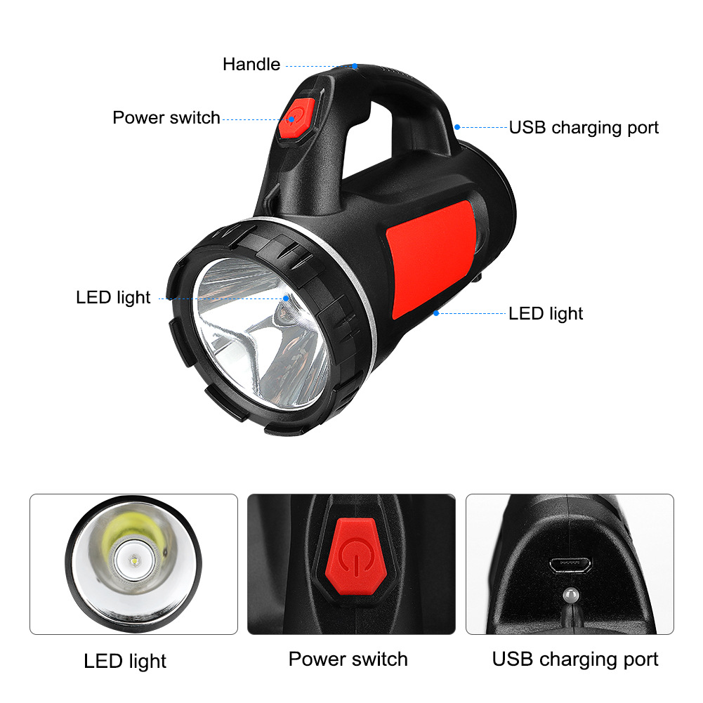 手电筒强光充电户外超亮远射功能家用LED照明手提探照灯带侧灯
